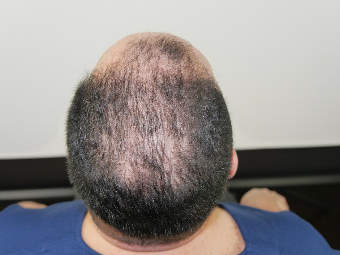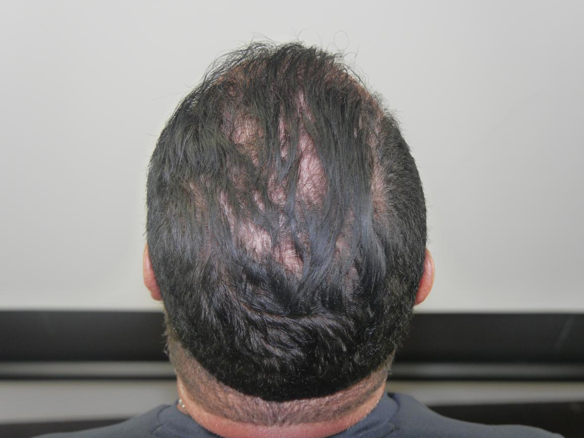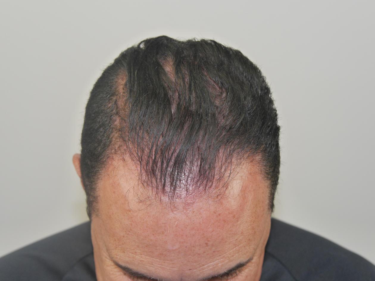 This 58-year-old male had 1949 FUT grafts placed in frontal and vertex areas in a single session. The photos show before and 18 months post-op. Patient is very pleased with his Hair Transplant results.