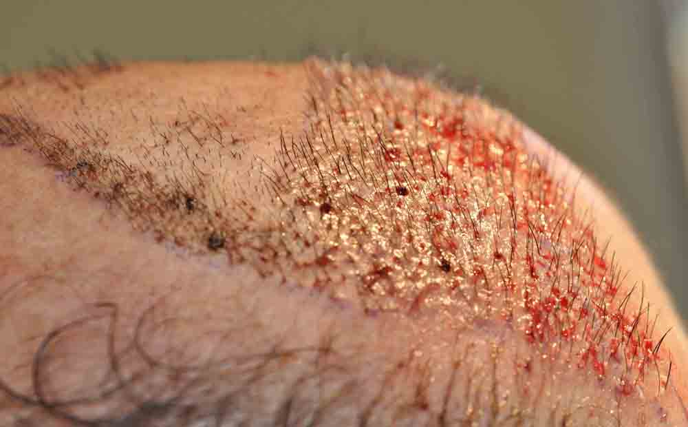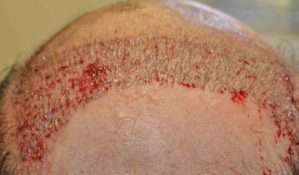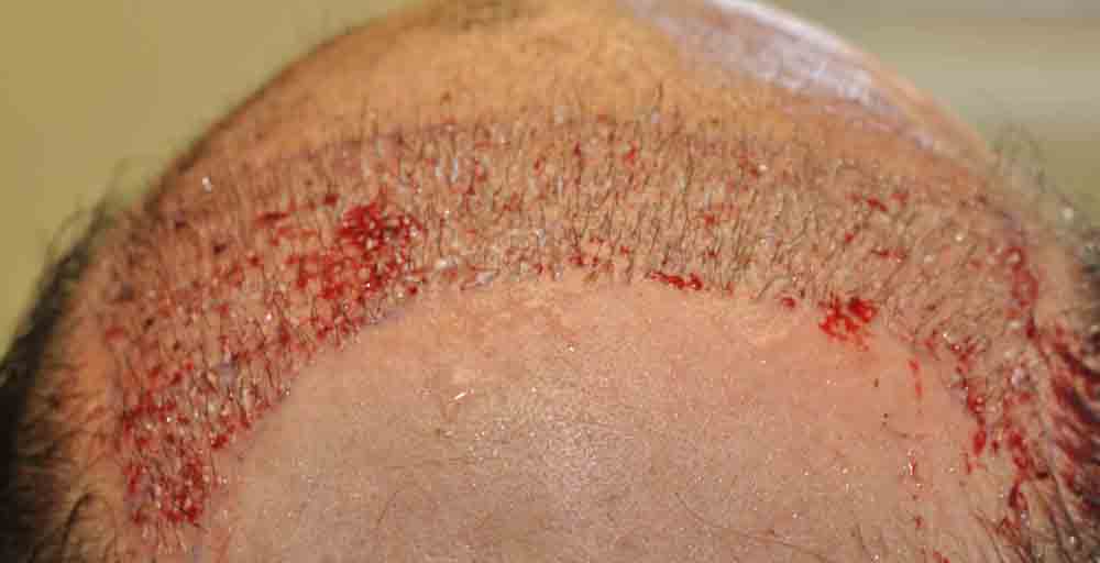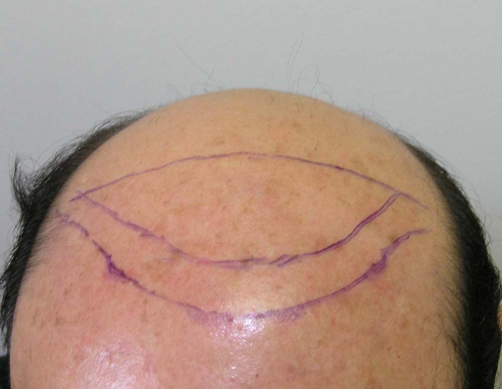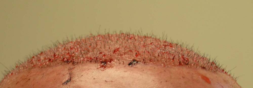 This fellow is a character. He is an acquaintance of a couple of our techs who came in with class 7 hairloss and a very large head. His donor hair is thin and somewhat sparse. Combine that with a true inability to set still after about 4 hours and you have a difficult surgery. PLUS, he is a chronic green tea drinker, and hence an oozer.