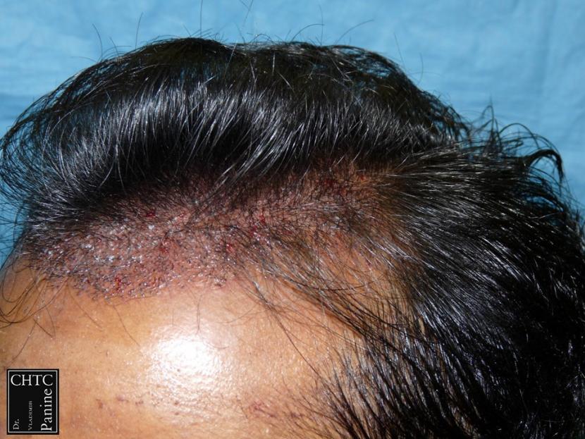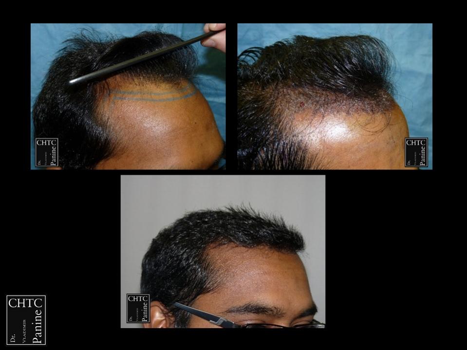 A total of 2,500 grafts were used in the frontal 1/3 of his head.