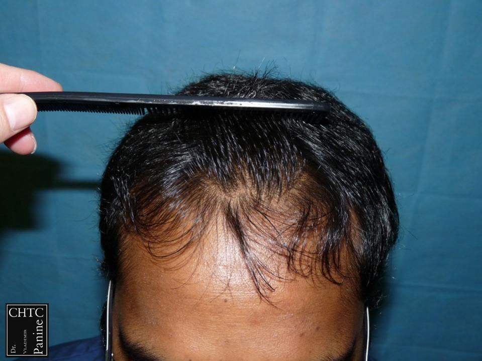 This 27-year-old gentleman had a hair loss pattern of a class 3 on the Hamilton Norwood hair loss scale.