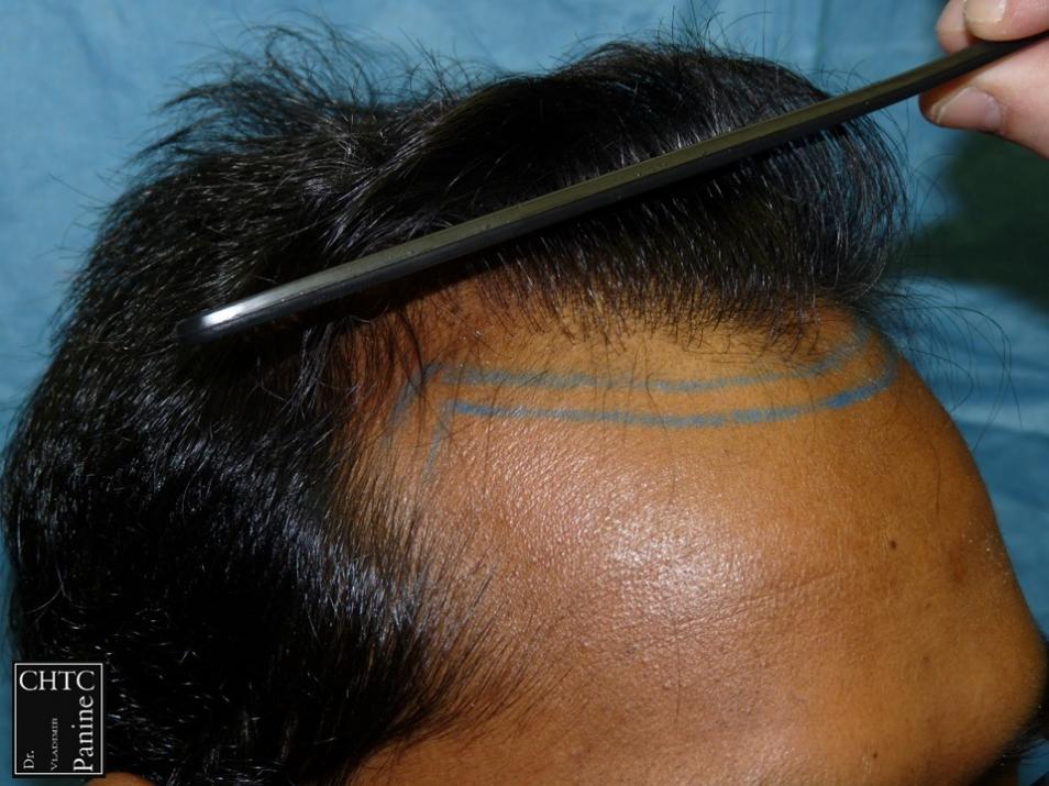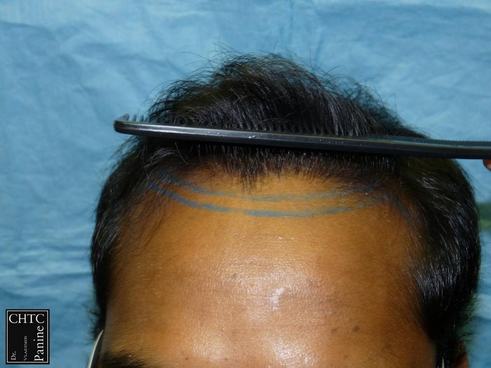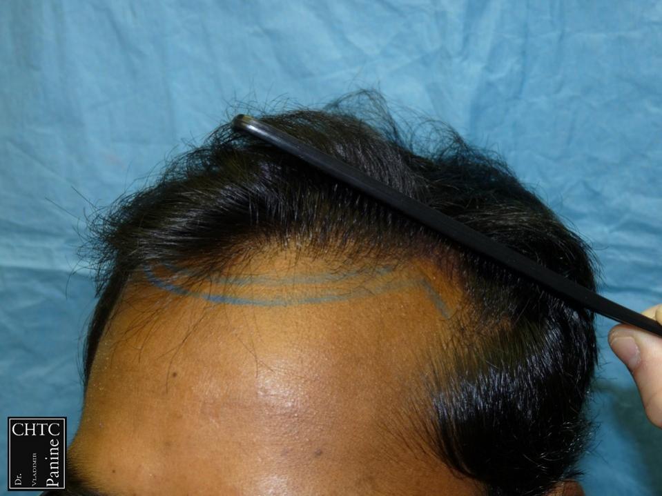 His goal was to rebuild his hairline and add density to the frontal 1/3 of his scalp. I discussed the patient’s goals with him and after taking his age and current hair loss into consideration, we came upon an agreement for what would suite his expectations. Therefore, I planned the surgery accordingly, paying careful attention to the hairline. I wanted to reconstruct a very natural hairline that would be suitable for him as he continued to age.