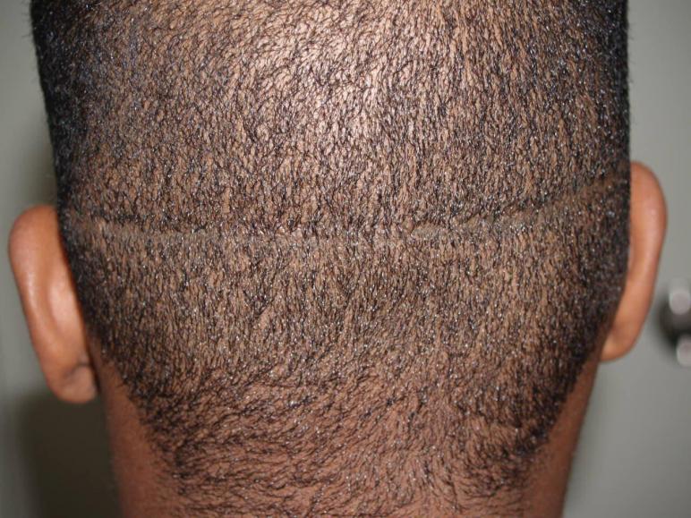 Shown here is before and after a procedure of 350 FUE grafts to a prior donor site scar.