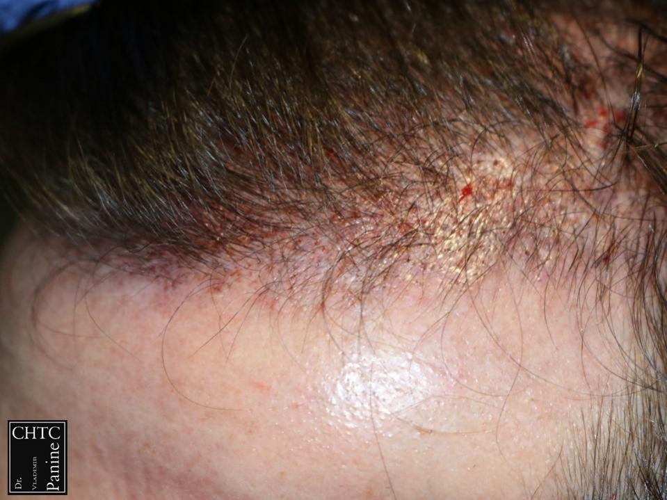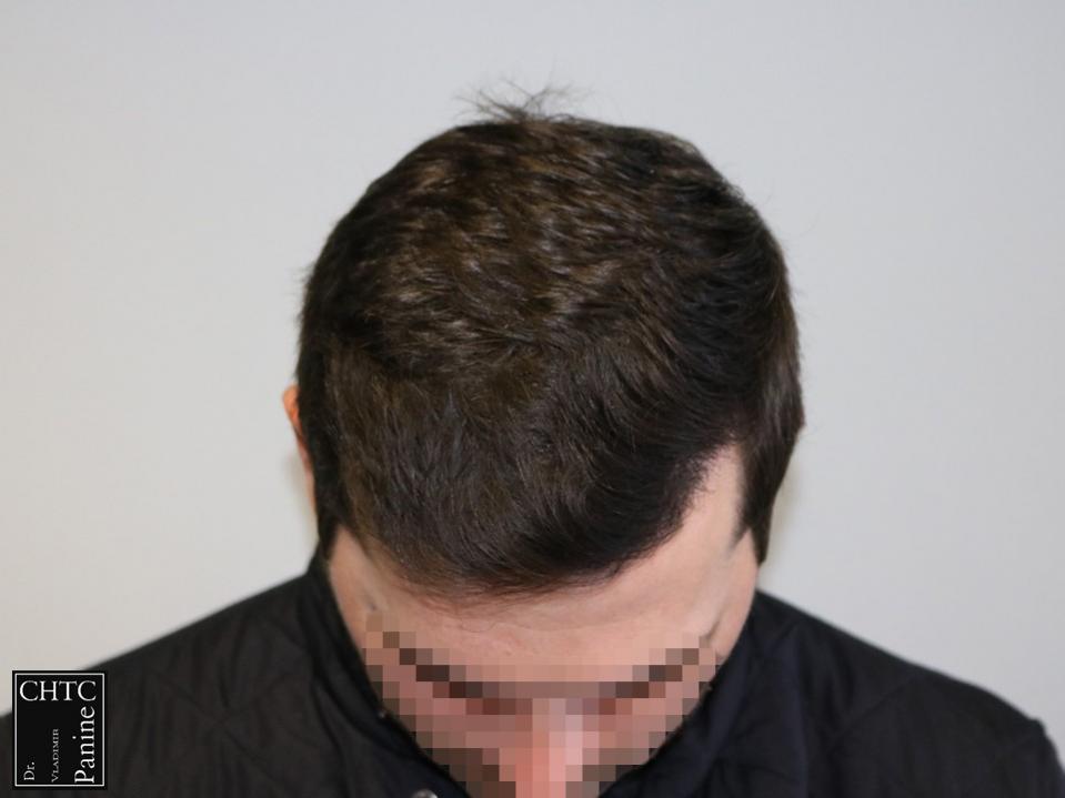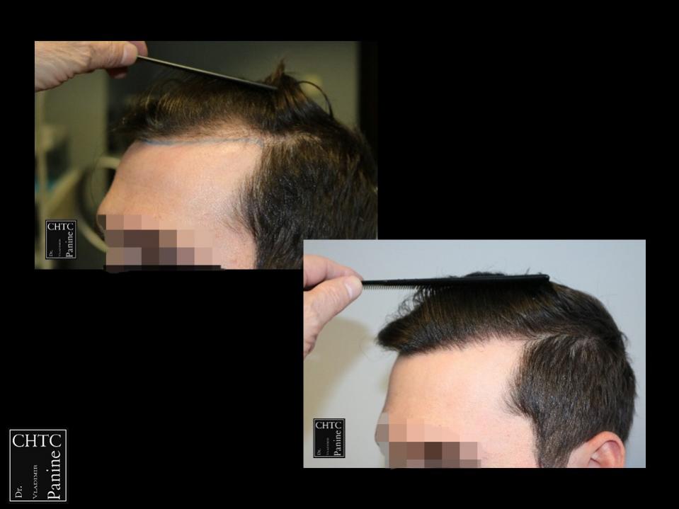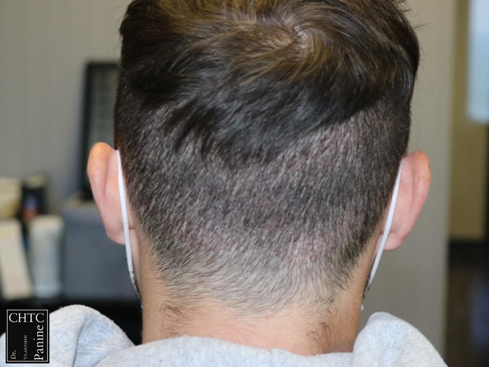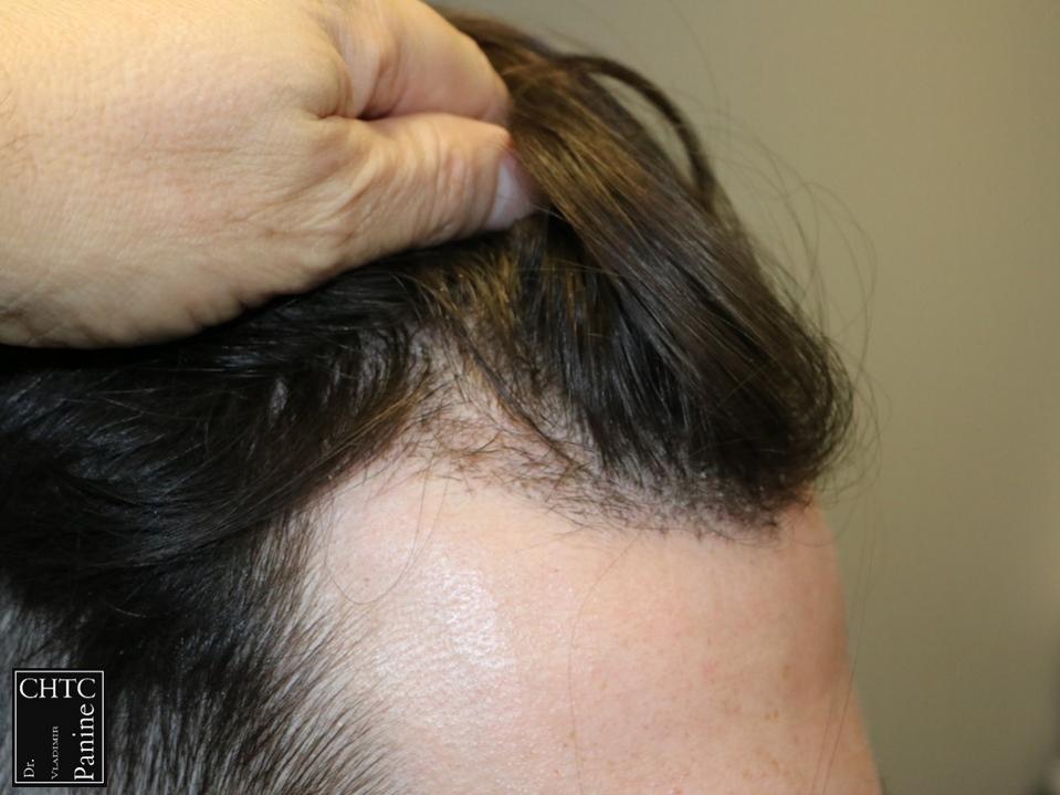 This 27-year-old gentleman had a hair loss pattern of a class 2 on the Hamilton Norwood hair loss scale. His goal was to augment his hairline and add density to the frontal 1/3 of his scalp.