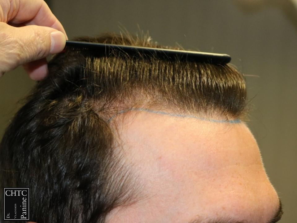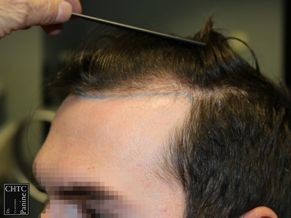 Taking his age and hair loss into consideration we discussed his goals and came upon an agreement for a surgical plan that would suite his expectations. We agreed on reconstructing a hairline that would be suitable for him now and as he continued to age in order to make the results as natural as possible.
