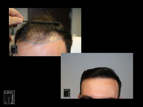 A total of 2,678 grafts were used in the frontal 1/2 of his head. These are his results on the day of the procedure, 1-week post-op, and 1-year post-op. The patient is extremely happy with his results.