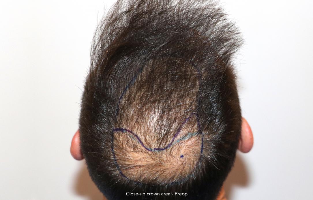 Follicular Unit Extraction to attain an aesthetic reconstruction of the hairline and the crown area.