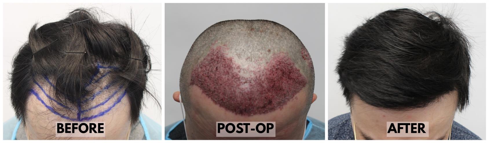 He has no family history of hairloss other than some nominal thinning on his father's side. The patient feels that he has the worst hair loss in his family on both sides. The patient has not used and is not currently on any hair loss medication. However, he has had 4 PRP treatments throughout the course of his 12 month post-op growth timeline.