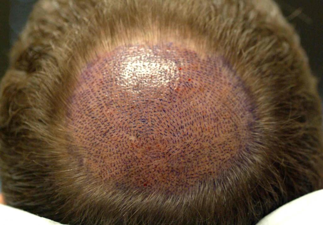 1585 grafts were placed in the crown following the natural swirl of his hair. These photos were taken 8 months following the transplant.