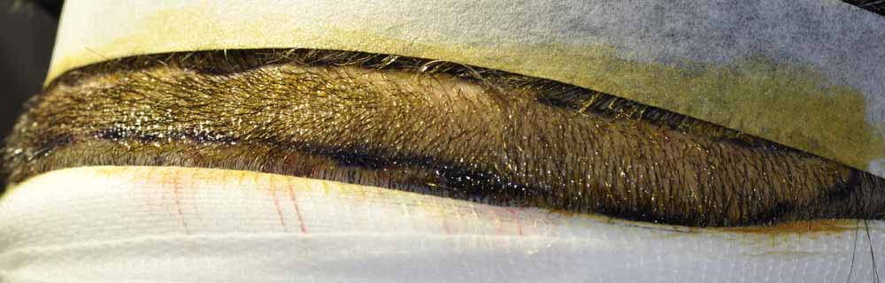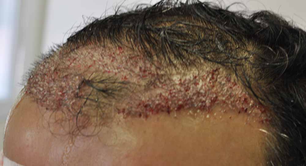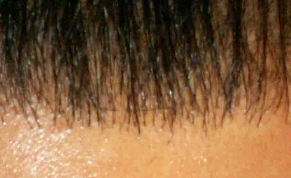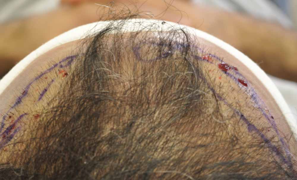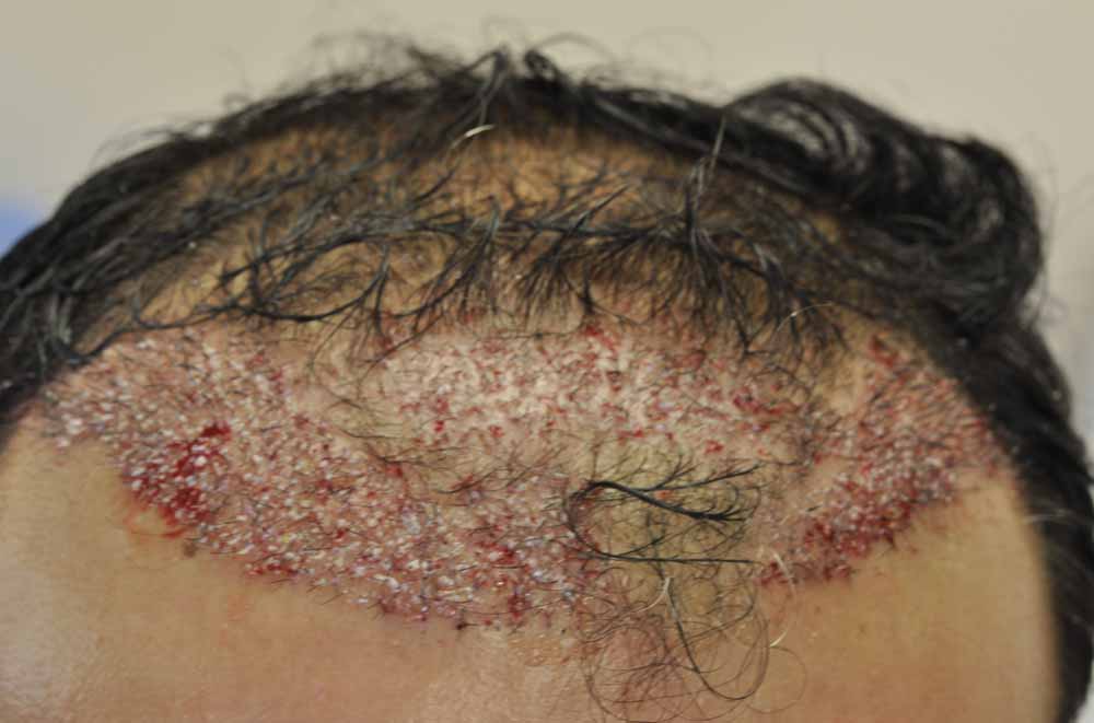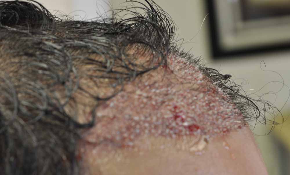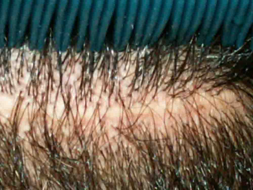 This fellow had had a relatively sparse minigraft transplant by a local doctor and he'd continued to thin significantly revealing the pluggy minigrafts and their sparse placement.