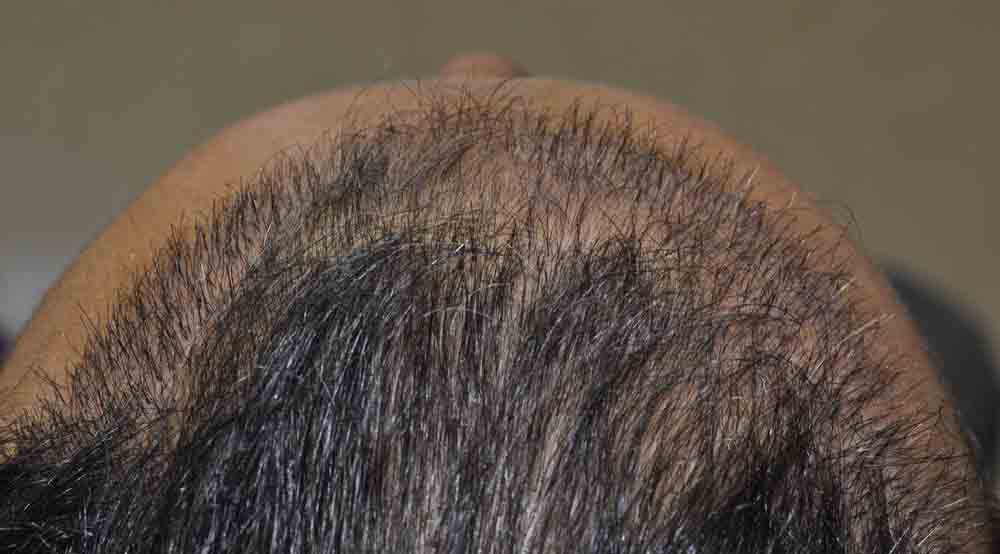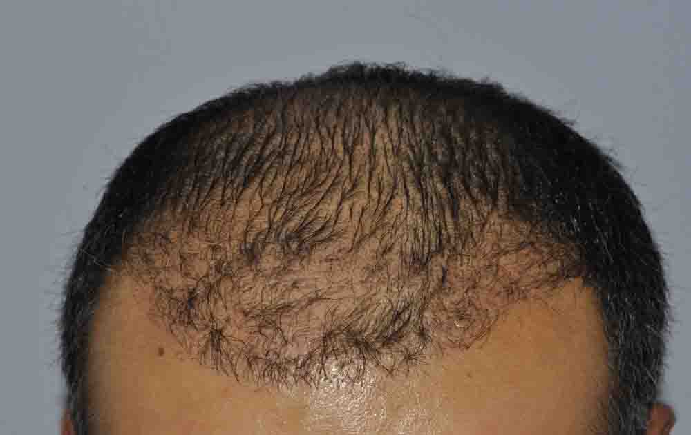 The patient has a huge potential for significant future loss and is on meds, but as you can see, his top and crown are continuing to thin.