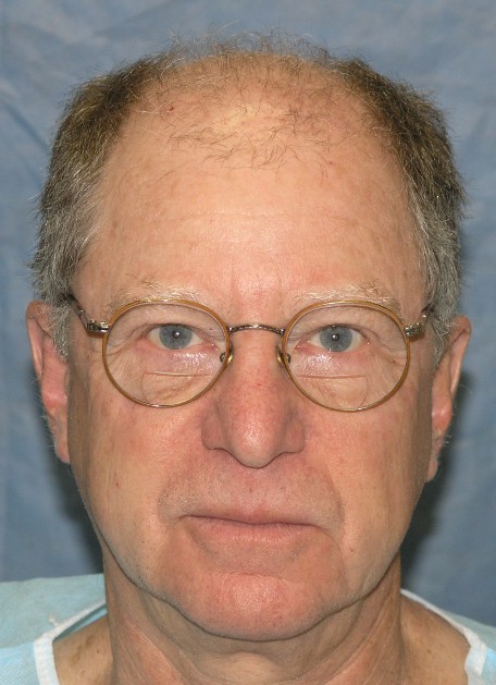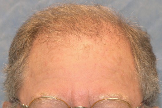 Bernstein Medical - Center for Hair Restoration patient FBQ is a Norwood Class 6 with slightly wavy, light brown hair and a donor density of 1.5. He had an old plug procedure in 1972. The results shown are after the excision of 28 large grafts and two follicular unit hair transplants spaced one year apart. The FUT procedures consisted of 2,204 and 1,919 grafts each, totaling 4,123 follicular unit grafts.