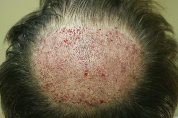 This patient recieved 2708 Grafts in one session placed in the crown. He is 6 months post-op. Typically crown growth starts at 4 months post procedure and this patient has 2 months worth of growth.