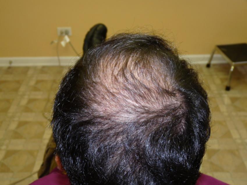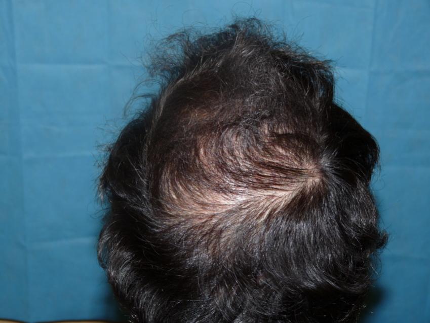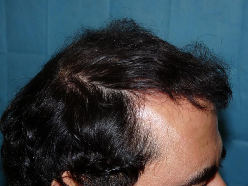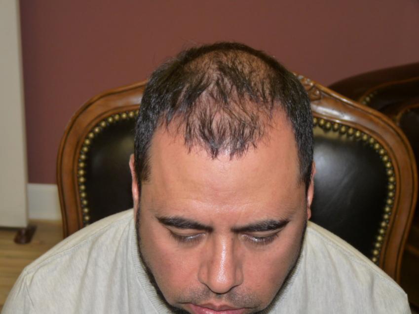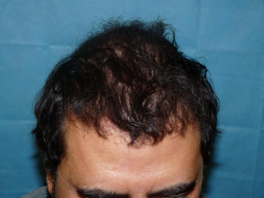 40 year old gentleman with a class 4-5 hamilton chart hair loss pattern. Patient still had some of his own hair that was very diffused. He was looking for a conservative hairline and wanted to add density through as much of his scalp as possible. He also understood that he would have a considerable difference, but might need a 2nd procedure for more density. We did 2,582 grafts and this are his results 8 months post-op. He should still have some more improvement over the next 4-6 months. He also started on Propecia one month prior to his procedure