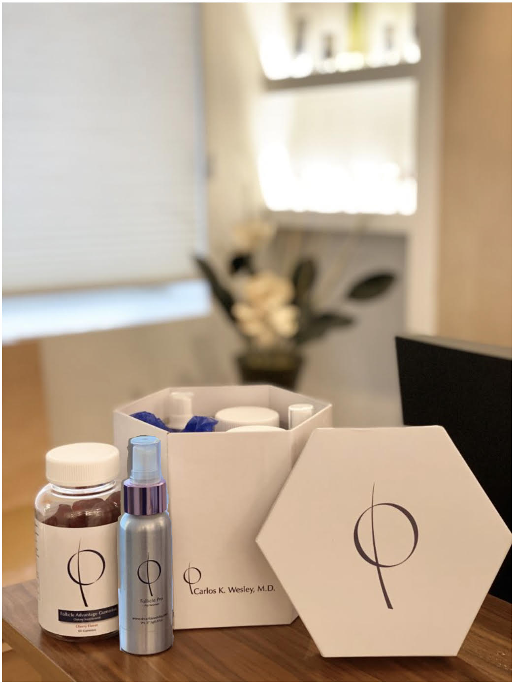 This 51-year-old woman underwent a follicular unit transplantation (FUT) session with Dr. Carlos K. Wesley in which a total of 1813 grafts were placed. In addition, she had also benefited from daily use of our Follicle Advantage Nutritional Supplement, one of the more popular hair-growth products offered to our patients.