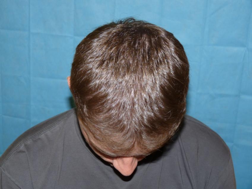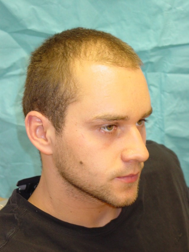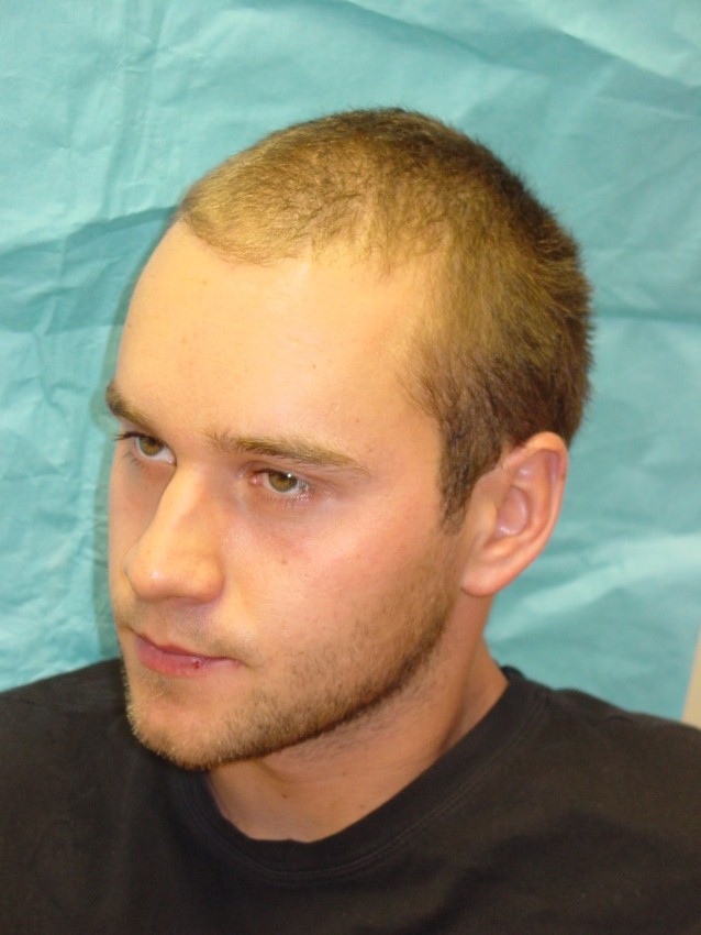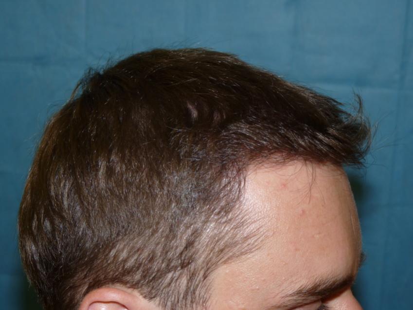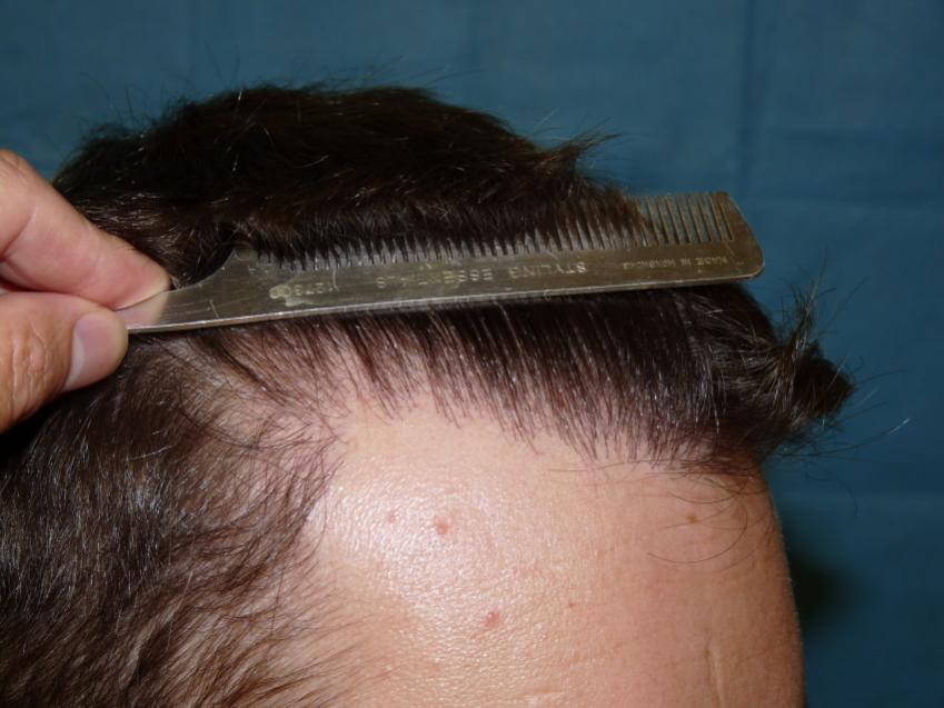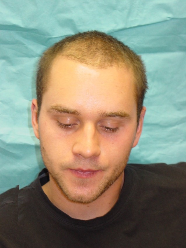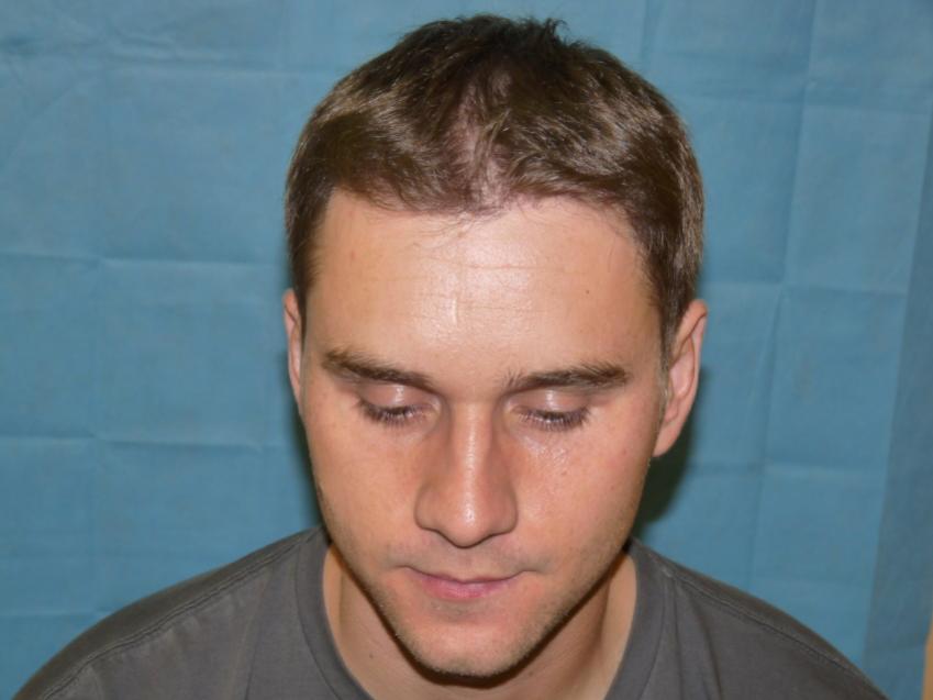 28 year with a class 3 hair loss was unhappy because he was unable to have a longer hair style because thinning was more noticable. We put patient on propecia to try and stop further hair loss and did 3,047 grafts to augment hairline and density to frontal 1/2. Post op pictures are one year after surgery.