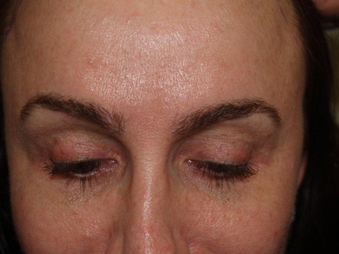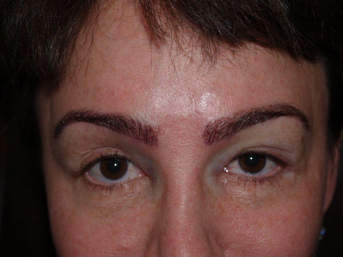 Before, immediately after, and after 300 grafts to the eyebrows.