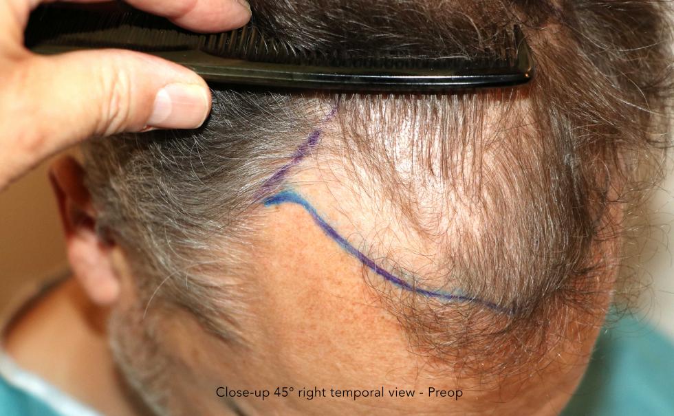 Follicular Unit Extraction to attain an aesthetic reconstruction of the hairline and midhead section.