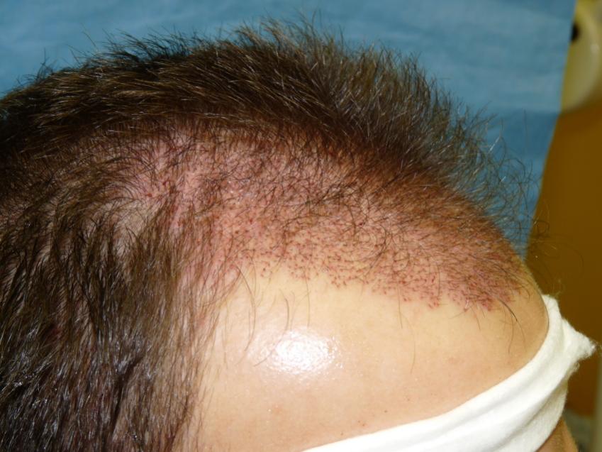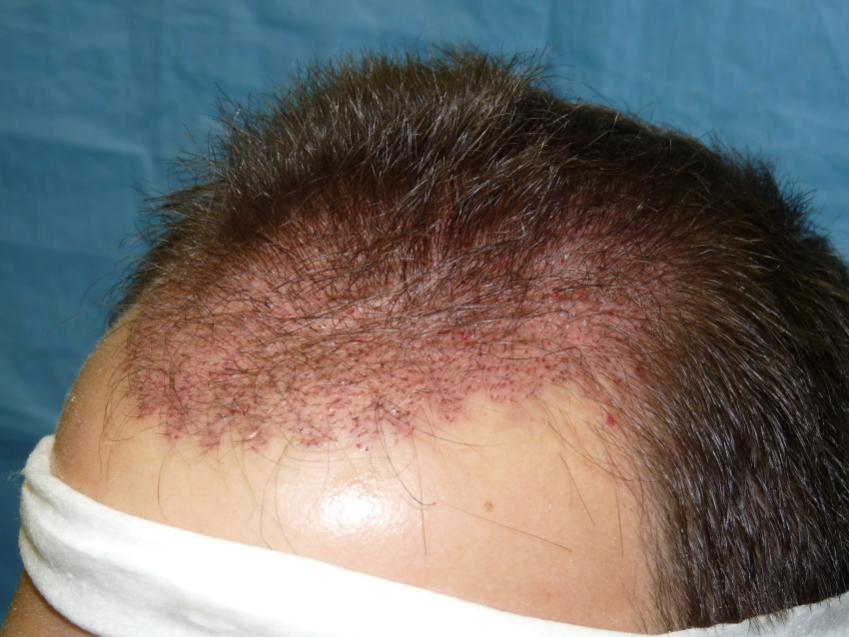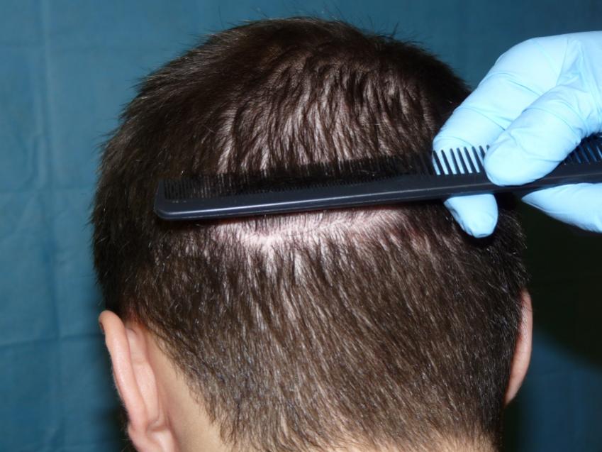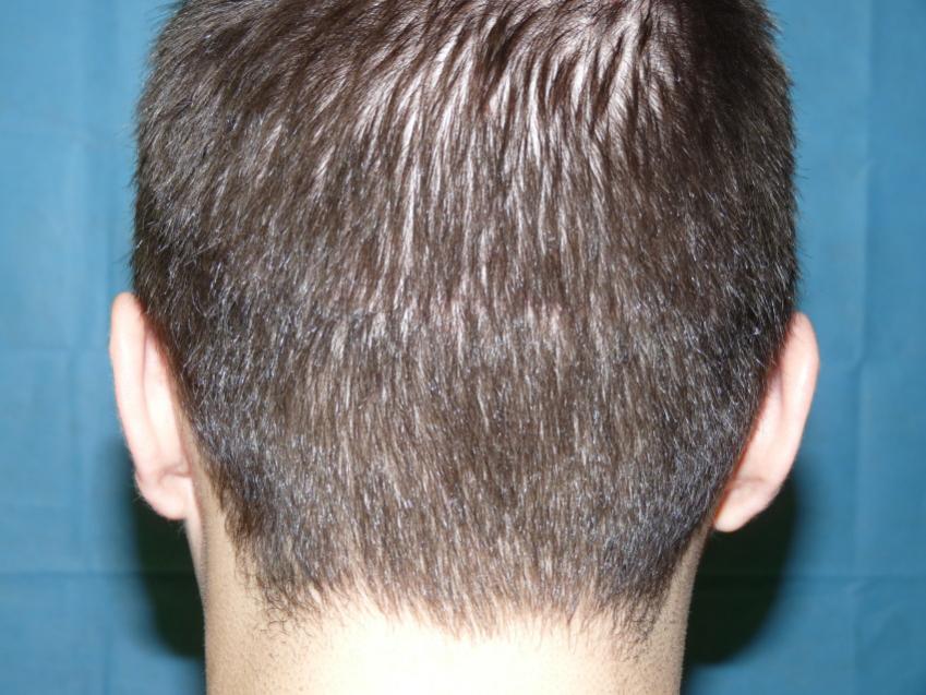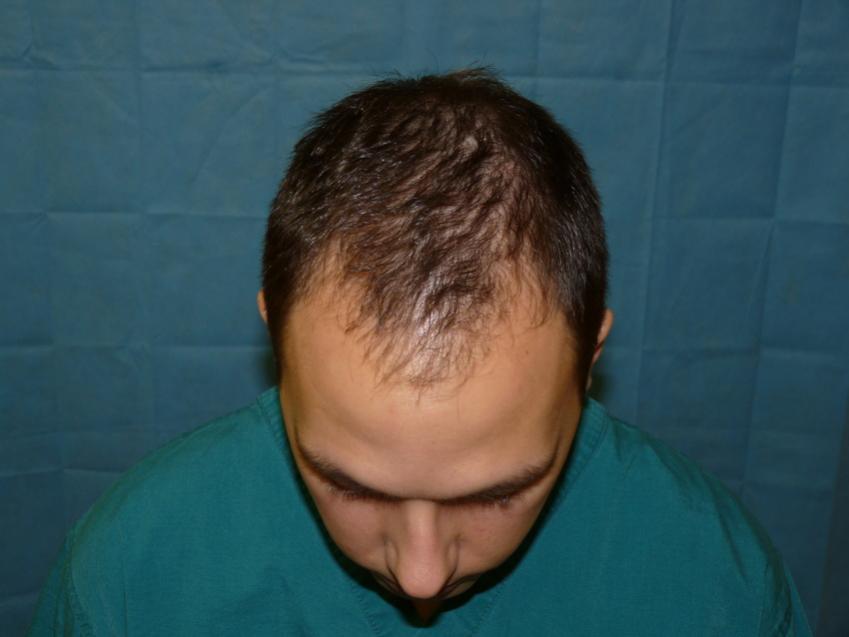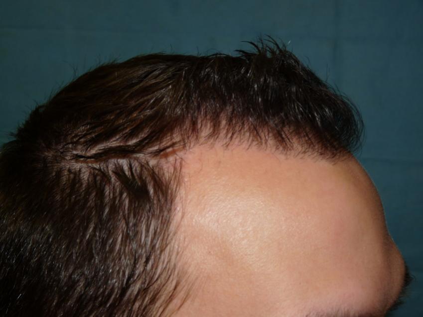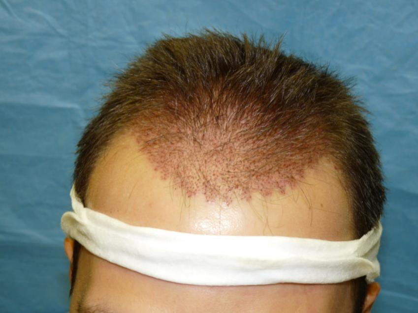 Patient is 25 year old gentleman who had a norwood class 3 pattern hair loss prior to his surgery. He had 2,085 grafts. Taking his age and family hairloss into consideration both us and the patient agreed on a conservative hairline for him. Patient is on Rogaine but does not want to take Propecia. We also agreed on not getting aggressive and trying to remove to large a strip since the patient likes to keep his hair very short. As can be seen in his post-op pictures the donor scar in undectable with his hair very short. We did a tricophytic closure in the donor area. Patient is also able wear his hair spiked up now which he was unable to do prior to his hair transplant.
