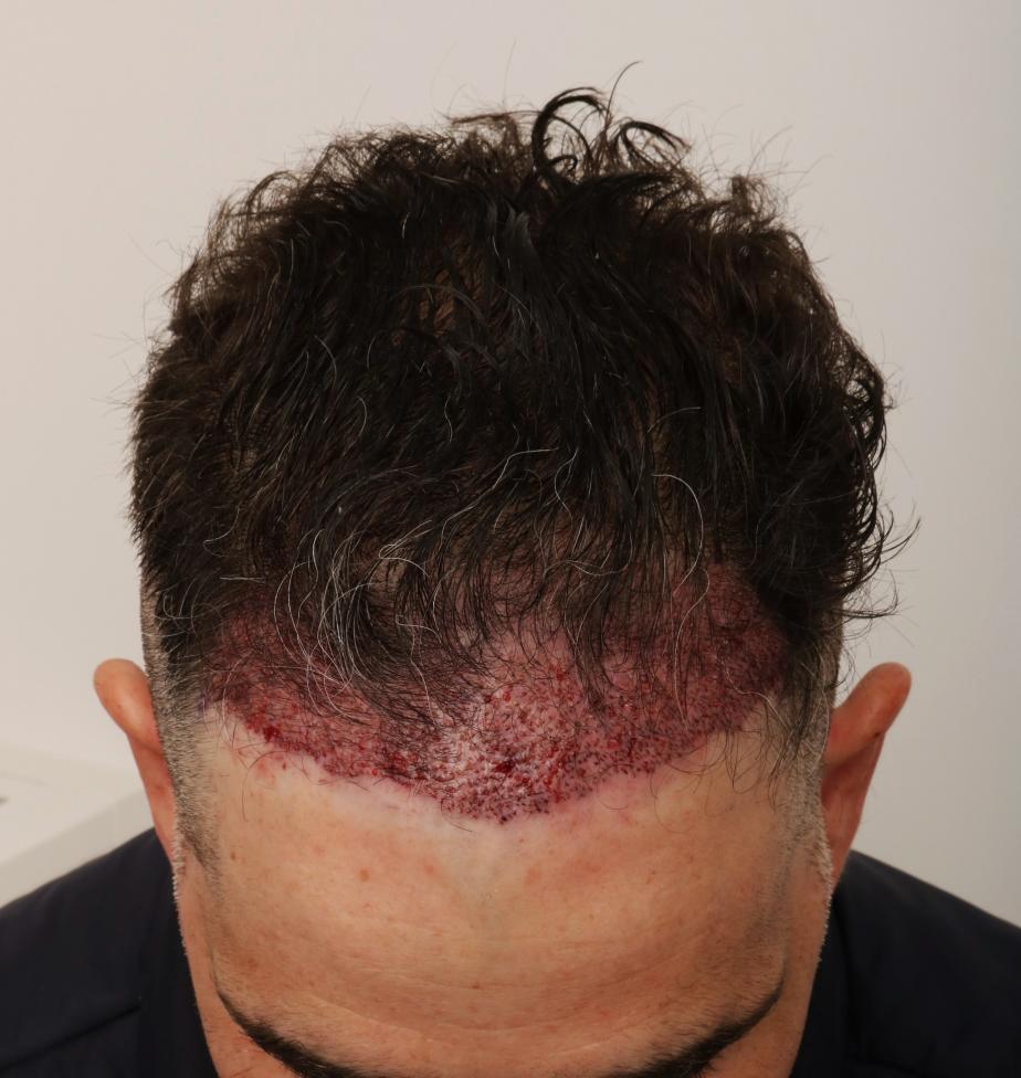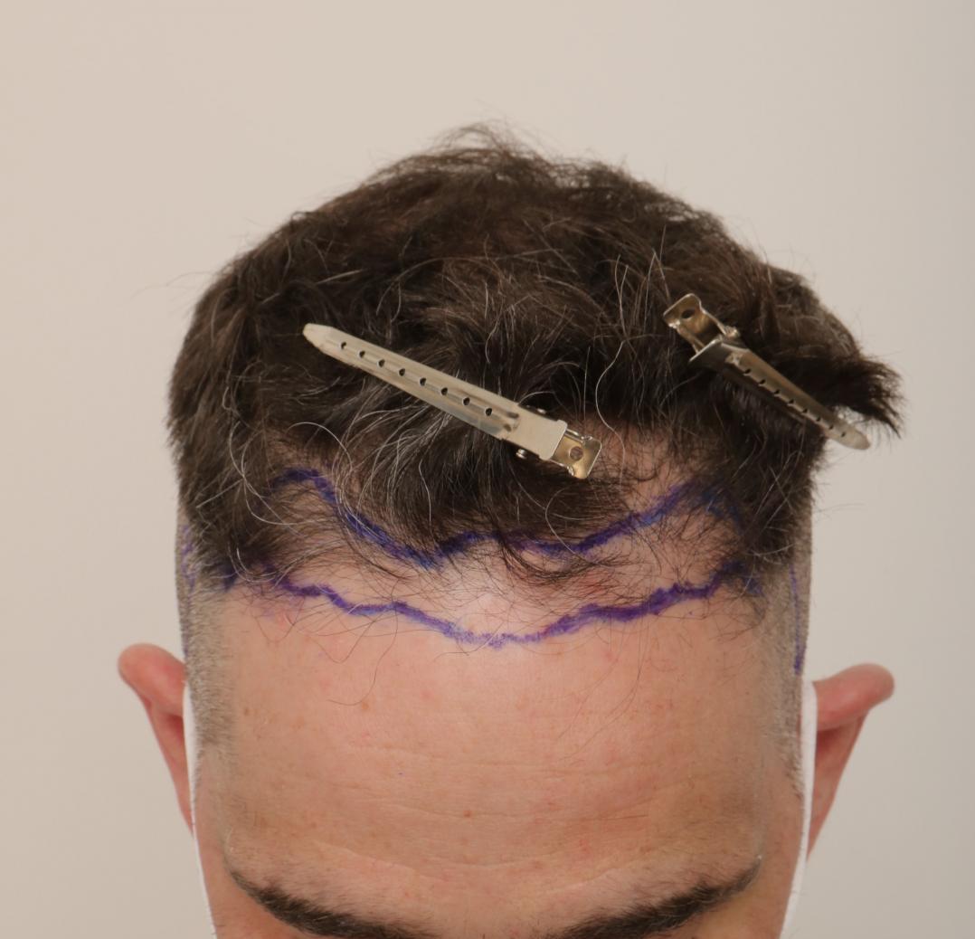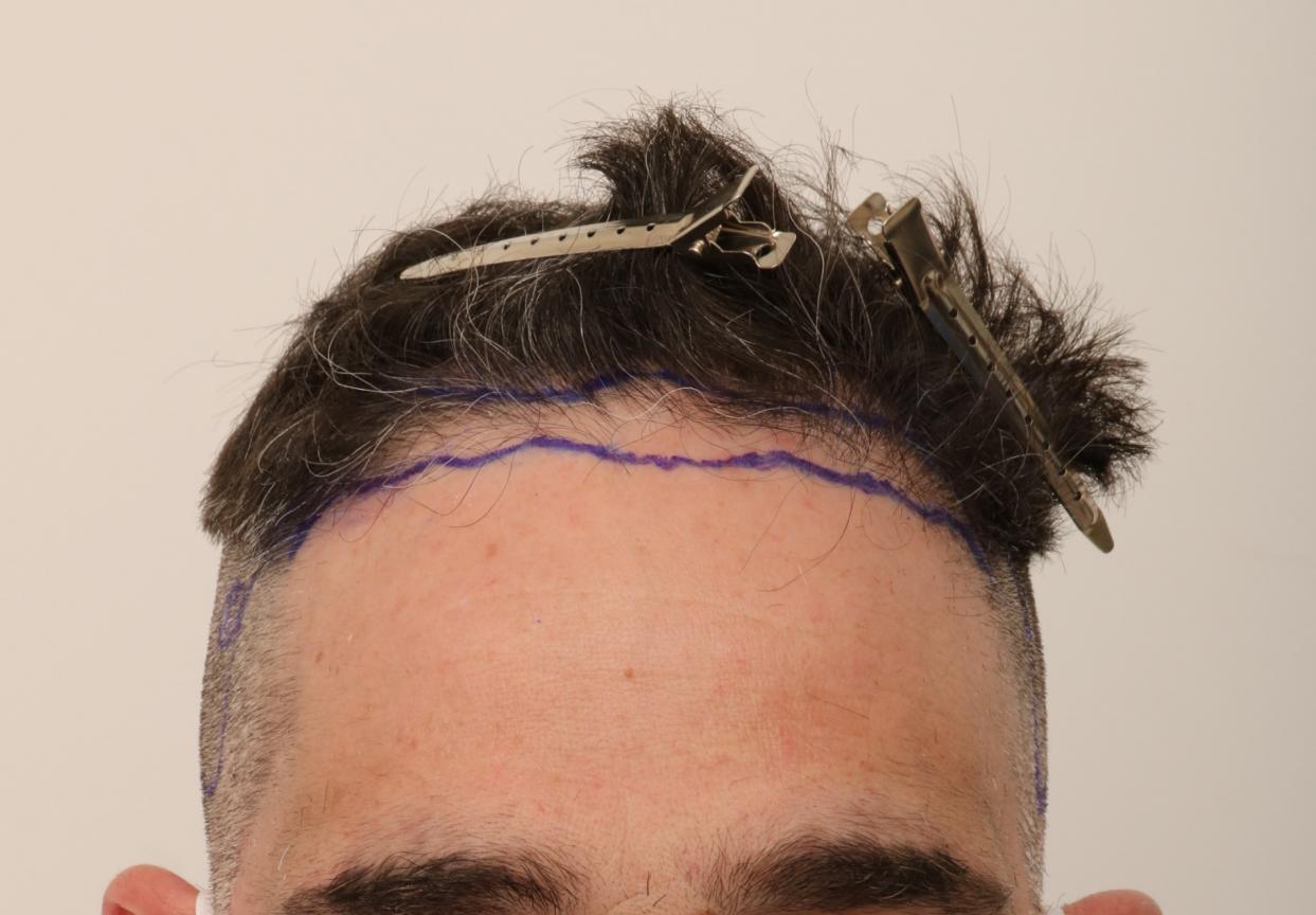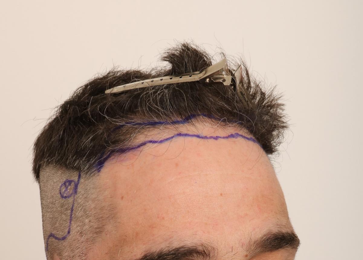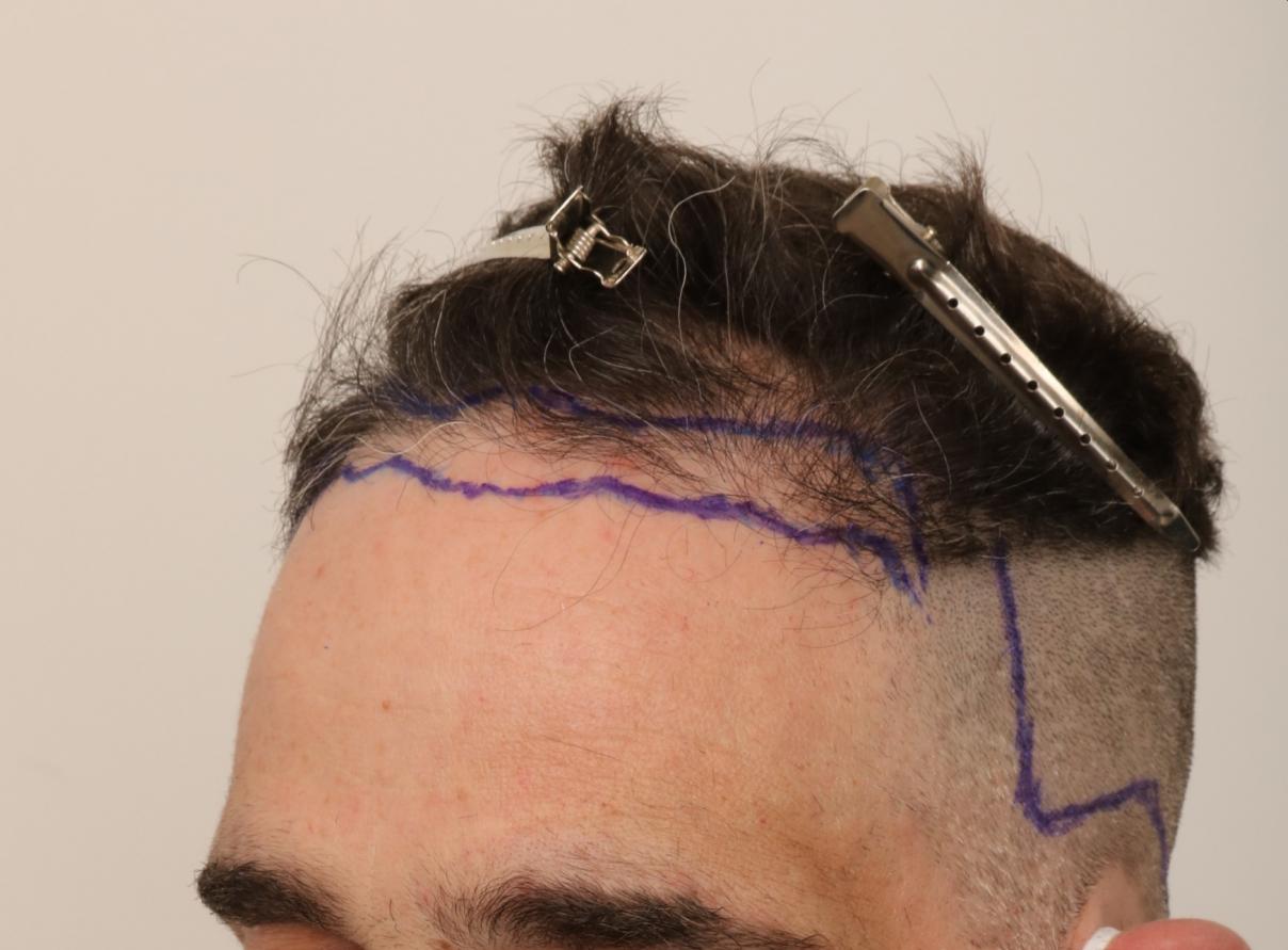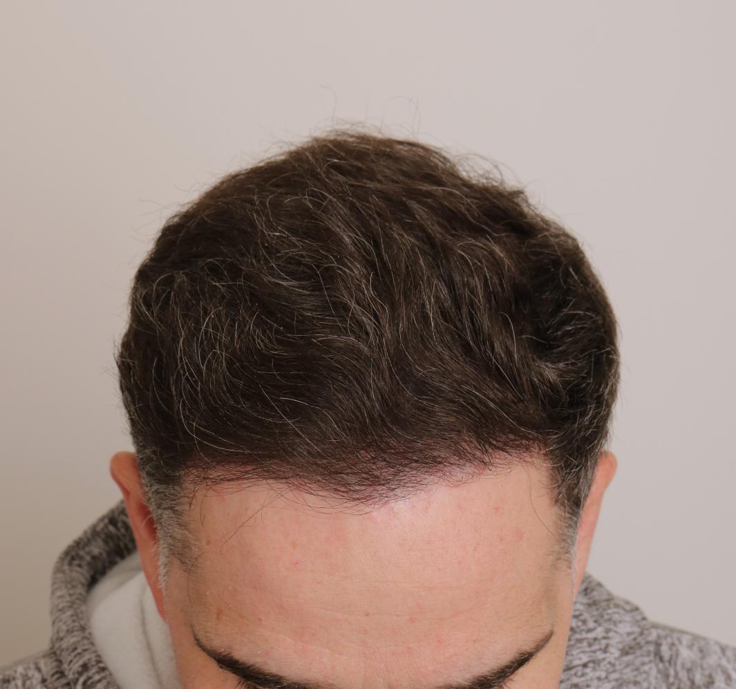 This patient presented to Dr. Robert Dorin with miniaturization and hairline erosion. An initial FUE session of 1449 grafts was performed, consisting of 409 singles, 878 doubles, 162 triples. PRP ( Platelet rich plasma) used intraoperatively with liposomal atp post-op care.