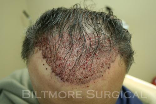 This patient received 2552 grafts in his hairline and back through his existing hair in the frontal third. He is 1 yr post op.Scott Alexander, MD www.drscottalexander.com