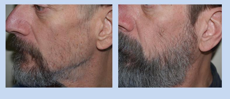 Before and after one procedure of 1400 grafts to the beard.