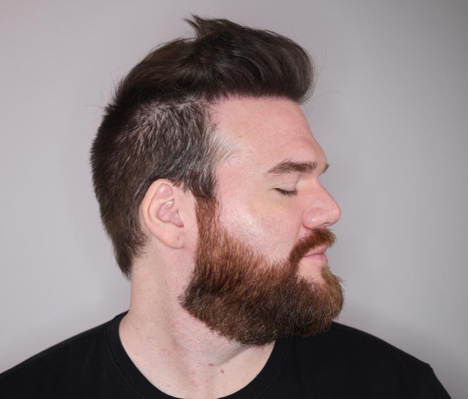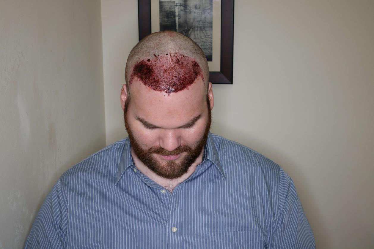 This patient had 3,059 grafts fue + prp with Dr. Hughes in our Beverly Hills Clinic to restore his hairline, temples and frontal region at high density