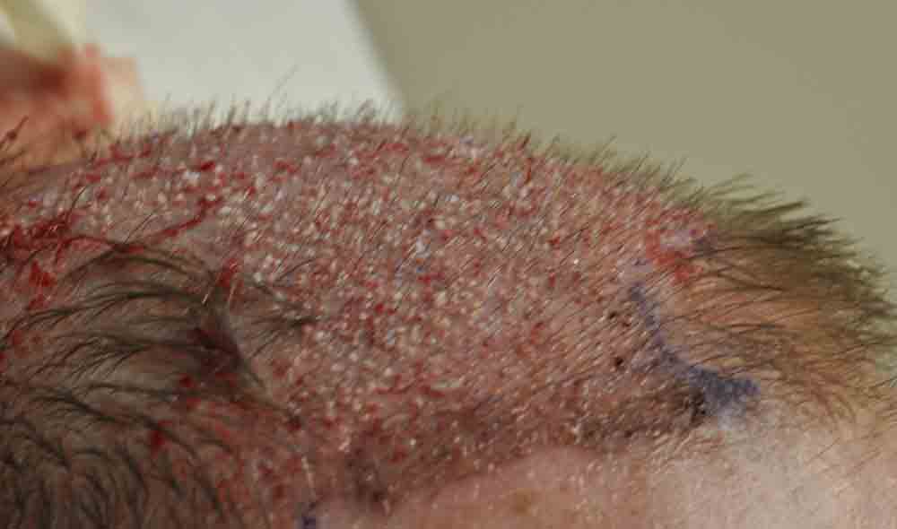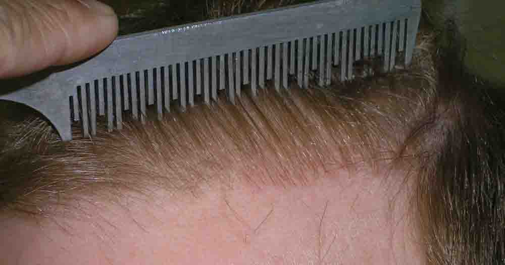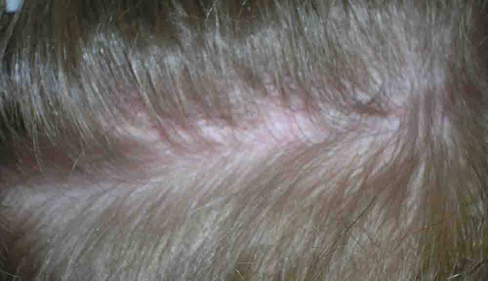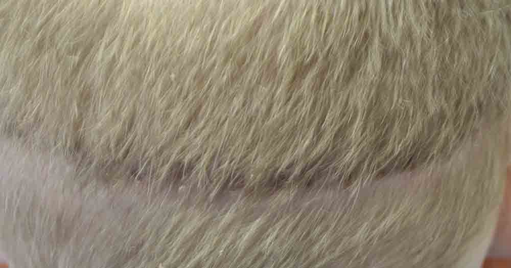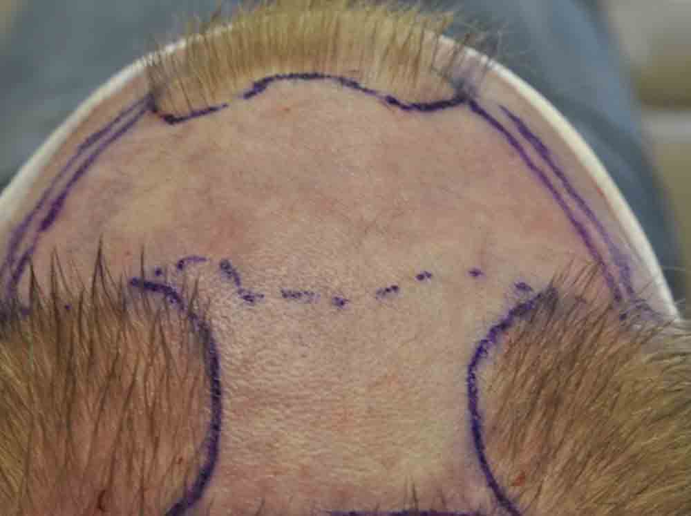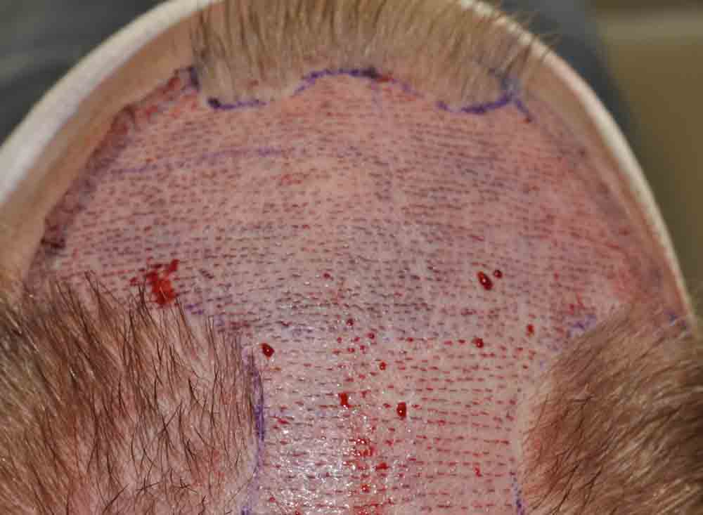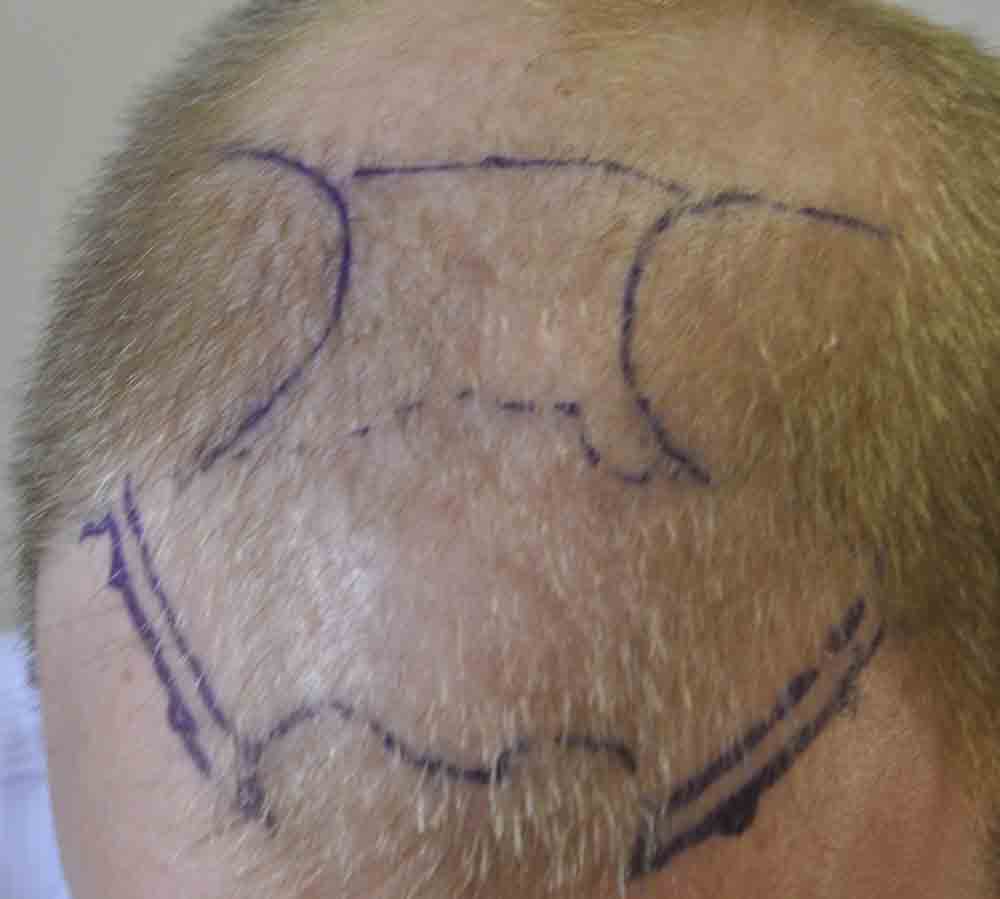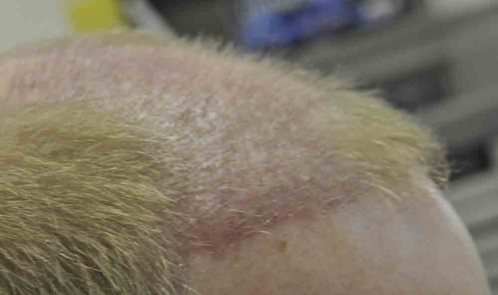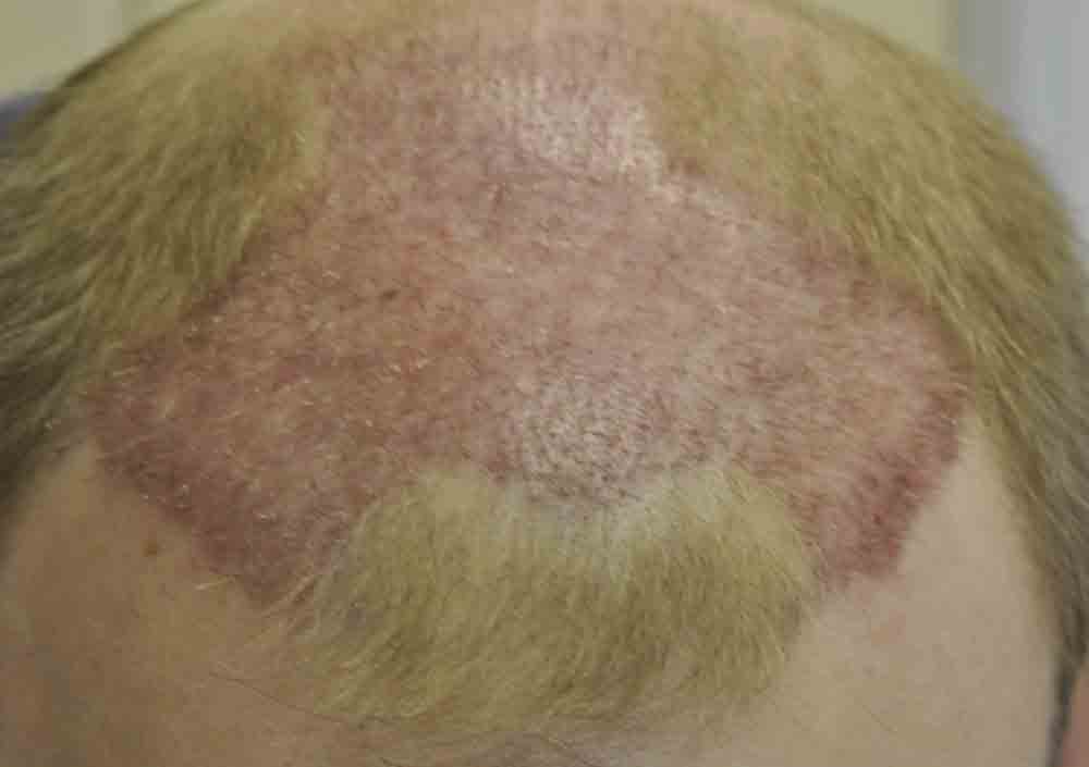 Although he lives nearby, I only saw him for suture removal and last week. He did a fantastic job cleaning postop and went back to work at a week where he says people thought he had a sunburn, but that faded and nobody paid much attention to his head.