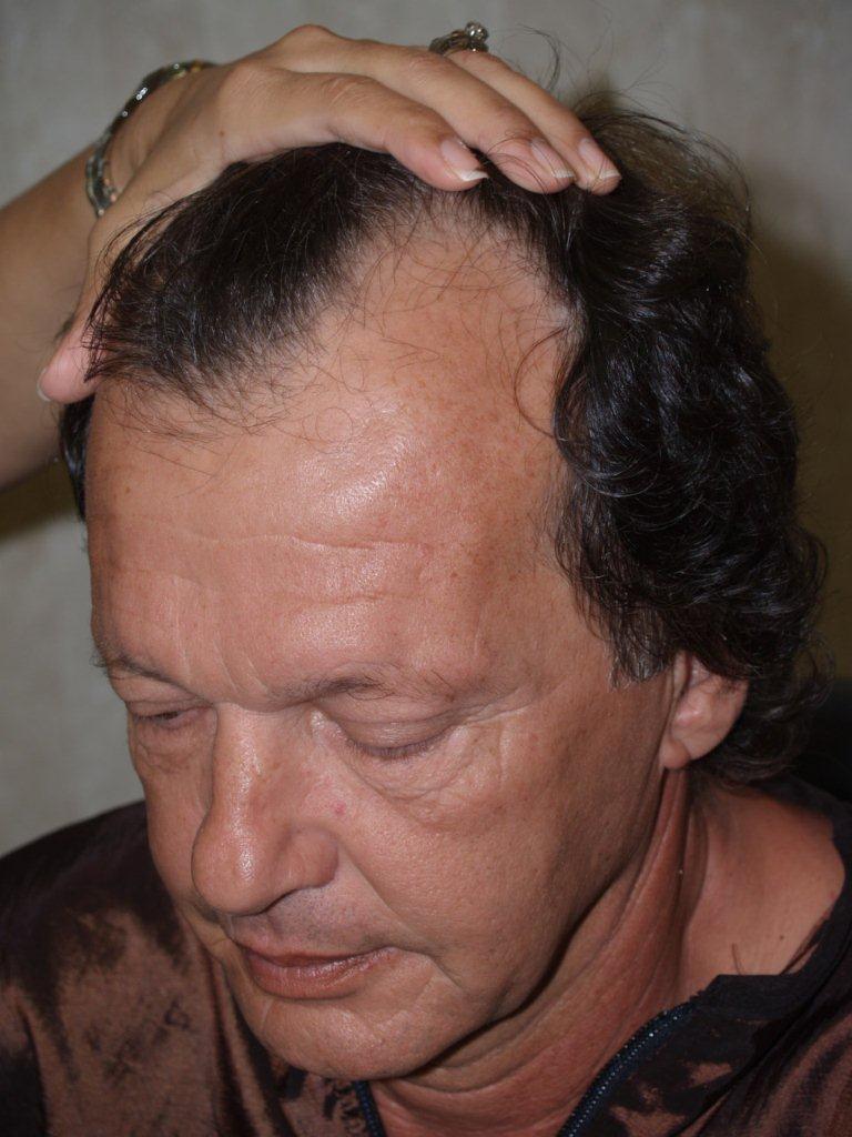Before, 1 day after, and 14 months after 2800 grafts. Approximately 350 of the grafts were placed into the crown region.