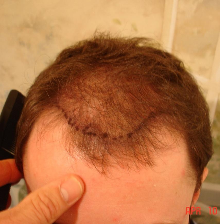 This case is 1608 grafts with a small number of DFUs from one procedure in a 24 yo with a 5 year followup. The patient who is now 29 years old has continued with finasteride throughout this period so it is hard to know how much is its contribution to the overall result. This case raises the issue of whether there is an age required to be considered a transplant candidate or whether, which is my opinion, it is more a question of where it is safe to place grafts in a person under his mid 30s. Briefly, I think it important to avoid placing very much density in the crown and to use most of the grafts in a frontal forelock that is connected at the hairline to the permanent hair on the side of the head as was done in this case. Of course the hairline cannot be too low. It is also important to see how much the donor area may thin over time. We can be less certain of this the younger the patient is. All we have to go on is whether there is evidence of miniaturizing hairs in the donor and whether the patient's family has members who have thinned in their donor areas.