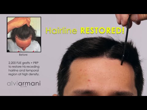This patient had 2,200 grafts with Dr. Barton to restore his hairline and temples at high density.