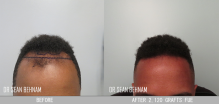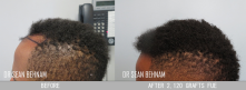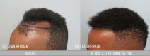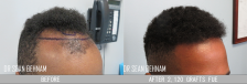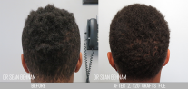 This is a patient who had 2,120 grafts at the hair line, notice the naturalness and the delicate placement of curly hair grafts in order to achieve the natural look. The transplanted hair matches well with his own natural hair.