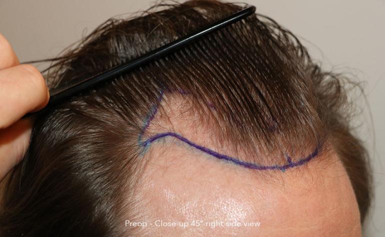 Follicular Unit Extraction to attain an aesthetic reconstruction of the hairline and midhead section.