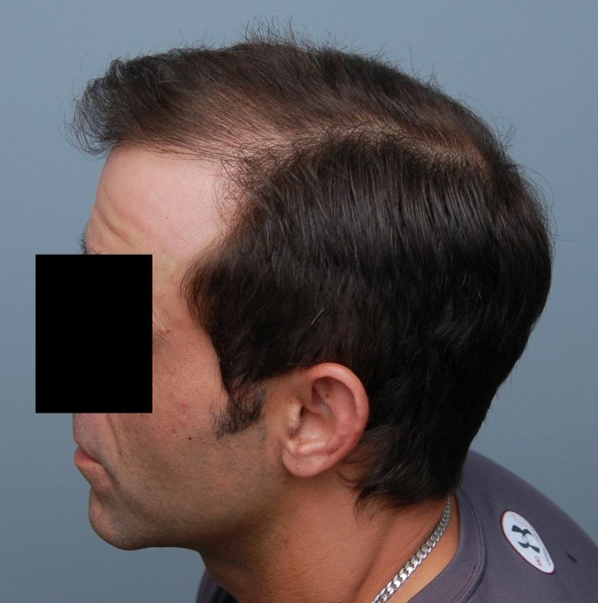 This case illustrates some important points, the first being the value of finasteride, and the importance of staying on it! The other point is that we try to plan our transplants in such a way that it will be relatively natural even if the patient stops finasteride. The transplant from 10 years ago held up relatively well and when he came in last year, virtually the only hair in the frontal scalp was in fact the transplants from 2003. It also shows the value of keeping hair in the donor bank for future use, especially for guys in their 20's, where future needs cannot always be accurately predicted.