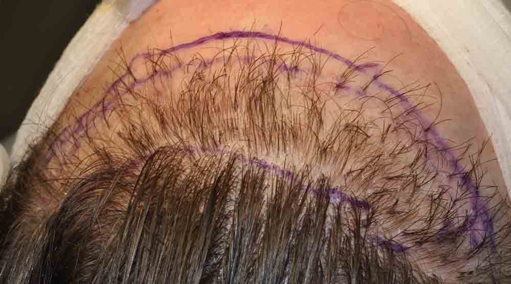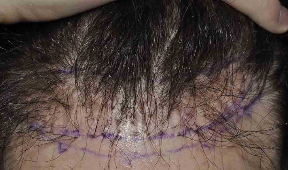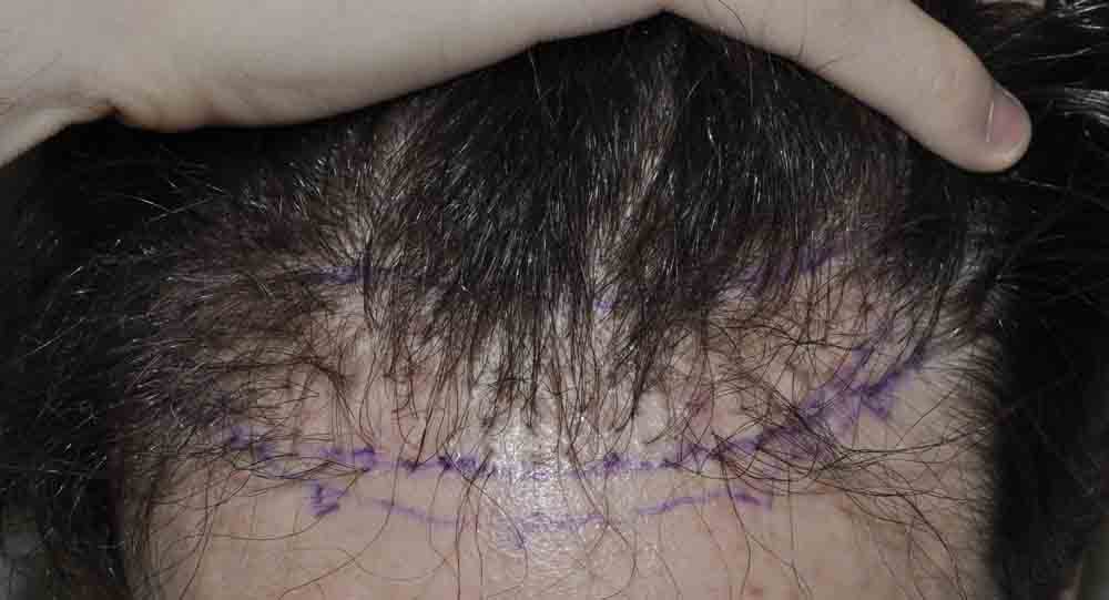 I offered him a strip surgery, to both pack the entire thinning area, and to excise some of his scarred donor area.