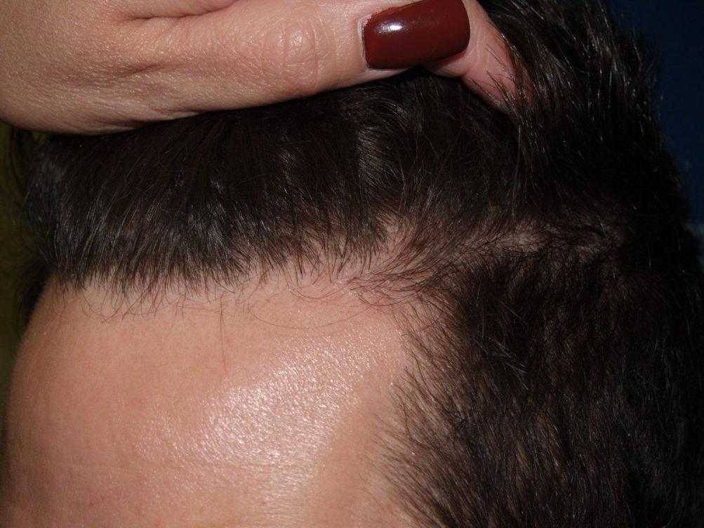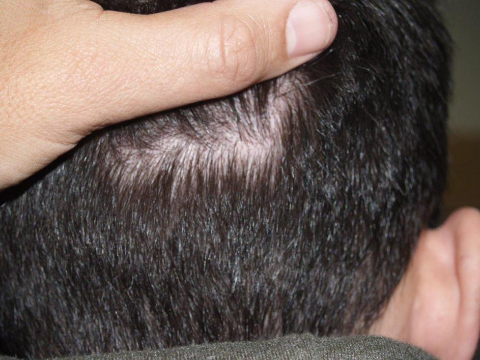 Before and after FUE procedure of 1300 grafts, with close up photos of donor area.