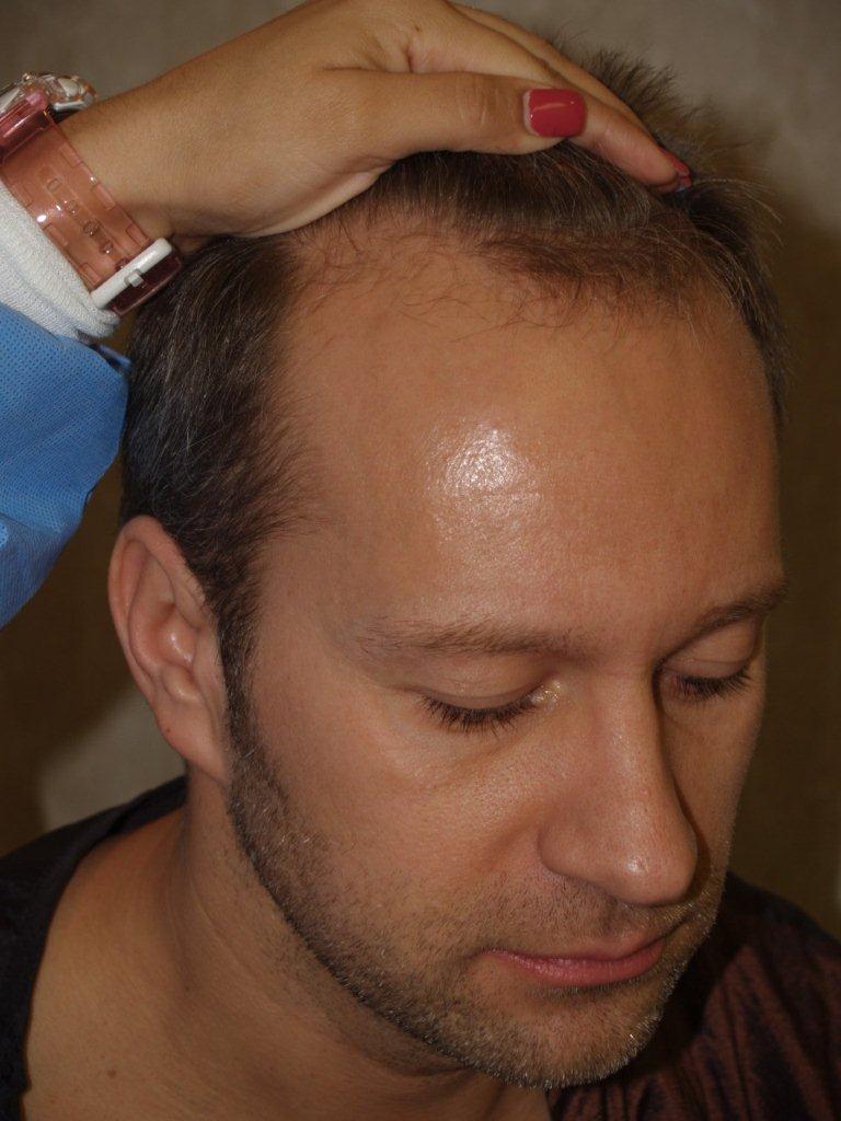 Before and after one procedure of 2300 grafts. Note the excellent healing of