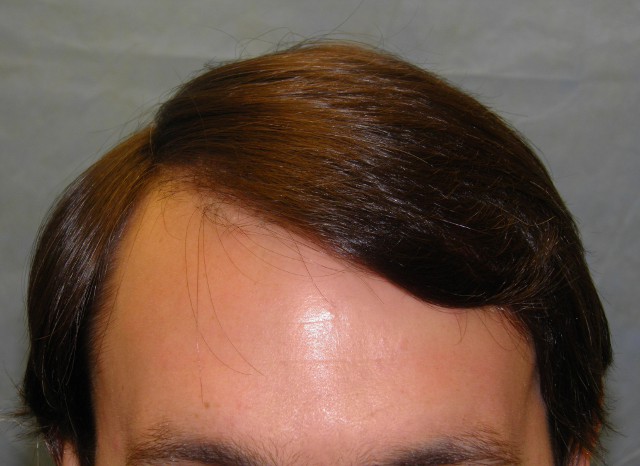 Bernstein Medical - Center for Hair Restoration Patient GEL is a Norwood Class 4A with straight brown hair and a donor density of 2.5 hairs/mm2. He had one hair transplant to the frontal area consisting of 2,010 grafts. Photos were taken before and then one year after the hair restoration.