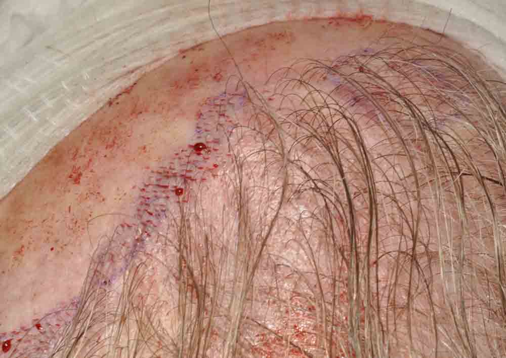 In fact the toughest part of the case was his really white skin and really gray hairs were so similar, that even with my 4x loupes, I had a tough time making the attempts. Of course once the skin was marked, Wendy had no trouble atruamatically removing and placing the FUEs.