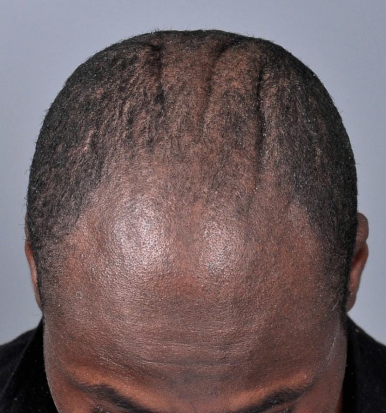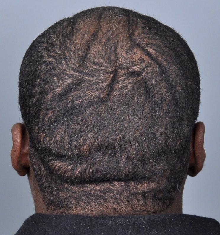 This patient came in for a hair transplant consult to camouflage his cutis verticis gyrata. In this condition, the scalp becomes mounded up in thickened skin folds. The cause is unknown, and in his case, was not associated with any other medical problems. He was in his late 20's and had noticed the problem developing over the prior 10 years.