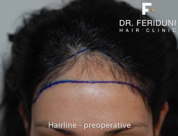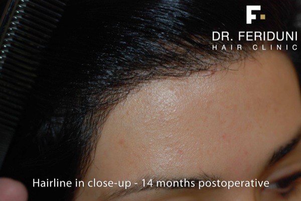Hairline lowering on a female patient performed by Dr. Feriduni – 2044 FU