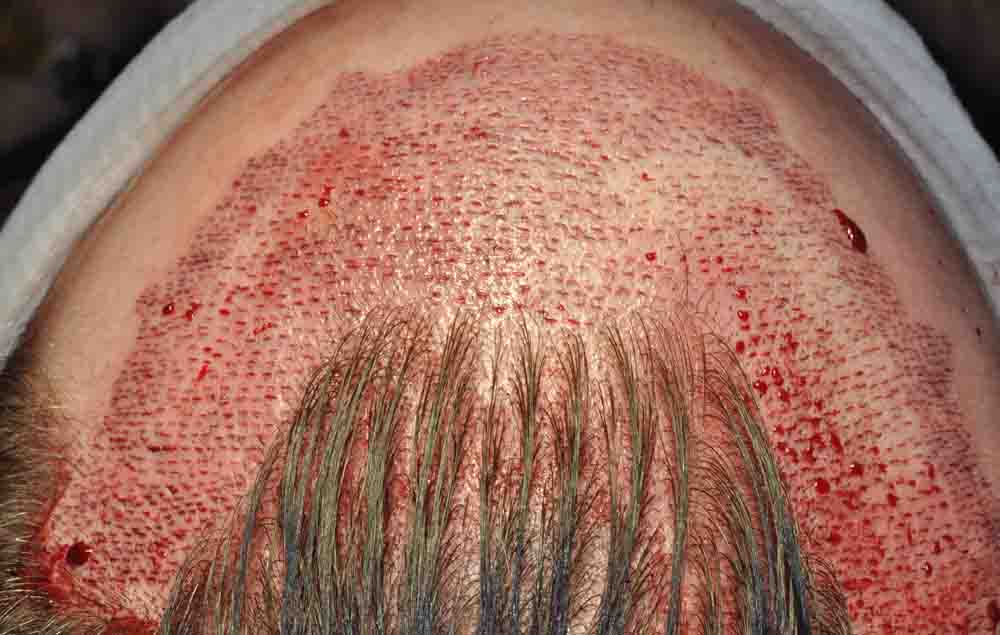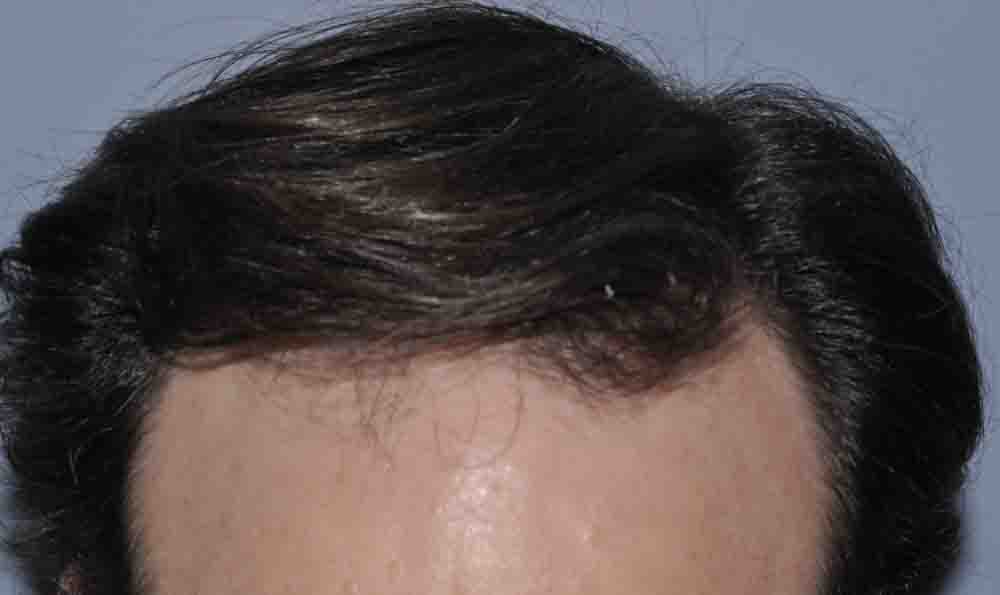 We did around 3000 for him rebuilding his hairline and going in to his very thin remaining frontal hair with packing of his nice donor hairs. Although he has thin hair shafts, they should give really nice coverage as they grow in. Last week he emailed in that he was surprised with the early growth he had already started to see. I asked him to stop by the office when he returns from a few weeks at the beach and let me take a look. I would agree that he’s growing early and hopefully this is just the beginning of his results that will peak next spring.