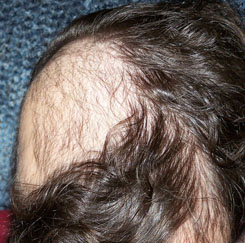 This 18 year old boy is about 10 years out from radiation treatments to cure cancer in the jaw joint. His entire right parietal scalp is without hair and this causes him a lot of distress. Readers may recall that I posted a similar case that we did last year with a one year update this past May with excellent results, also in a young man. And readers may know that my daughter has brain cancer, so I am only too familiar with what these kids have had to endure.