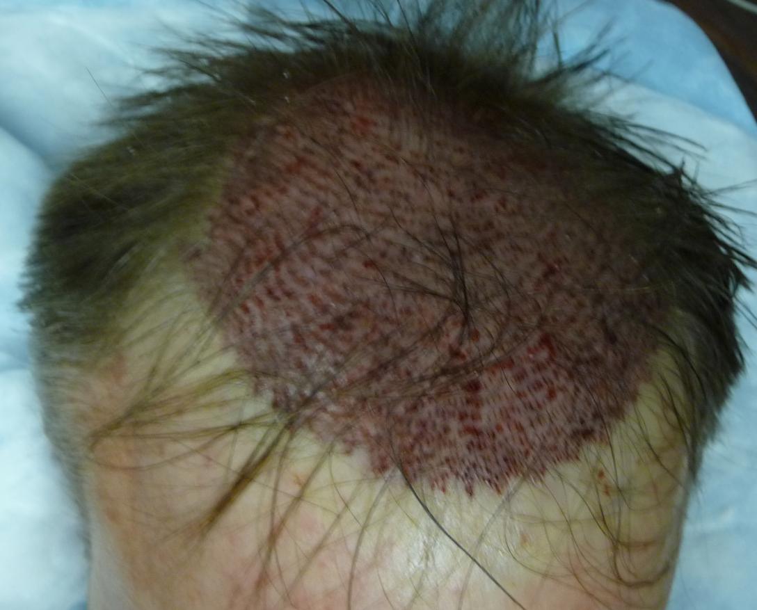 This is a patient of mine 8 months after receiving 2572 grafts to the frontal and mid scalp. Harvest was via FUT. Video of the patient's donor scar is included.
