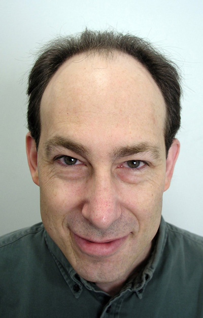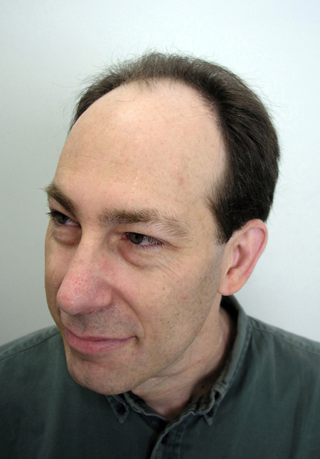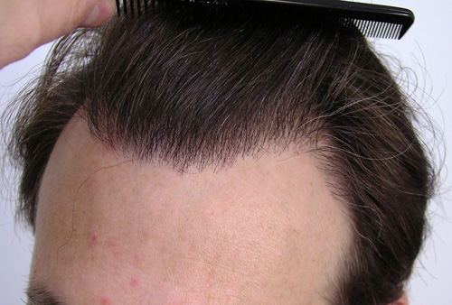 This patient is a perfoming jazz musician with a desire to achieve an appearance that would behoove his work and lifestyle. Often traveling, our goal was to do an optimal procedure for him with this intial step. His donor supply is way above average, in excess of 10,000 grafts and his hair texture is coarse and heavy. The frontal region received 3,513 follicular units consisting of 3513 grafts, of which 899 are singles, 1877 duos, and 737 are trios. A total of 6,864 hairs transplanted. He has been using Propecia for the past 4 years to manage the vertex.