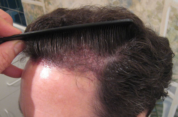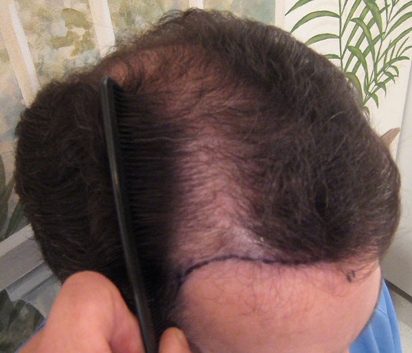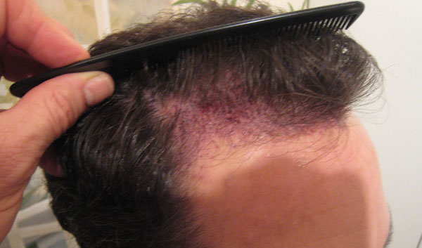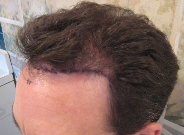 These photos are the before, immediately after and results of one procedure with results taken approximately ten months after the procedure. The total number of grafts was 2578 (811 1 hair fugs, 1041 2s, 226 3s and 500 4 hair dfus) which contain approximately 5600 hairs and were taken from 1cm width of donor x 25 cm in length.