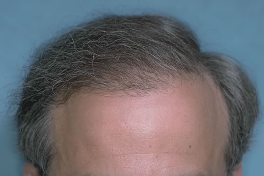 Bernstein Medical - Center for Hair Restoration Patient CZQ is a Norwood 4A/5A with medium weight, slightly wiry, salt and pepper hair. Results after one hair transplant session of 2,064 follicular unit grafts.