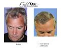 50 year old gentleman presented with considerable thinning and alopecia of the frontal anterior 1/3 of the scalp. He had a small tuft of hair in the central scalp which had not changed for several years. He desired restoration of the hairline and anterior scalp. 2506 grafts were placed to build a natural hairline and frame his face. The results are two years post op.