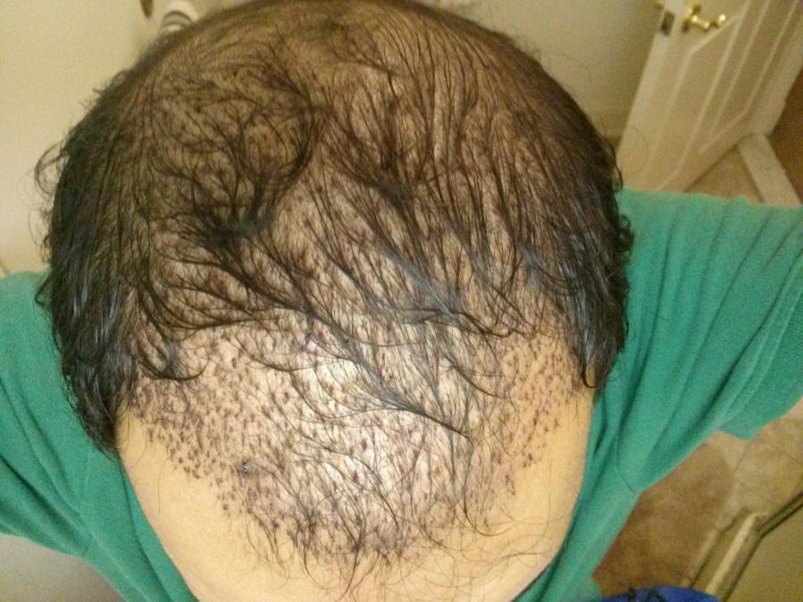 Just for reference, I'm not completely bald - do have some hair for coverage. I attached pics of my hair pre-HT (with Toppik), pre-HT without, and today (Day 5 post-HT).