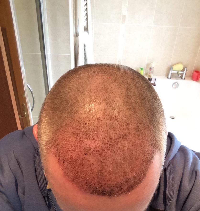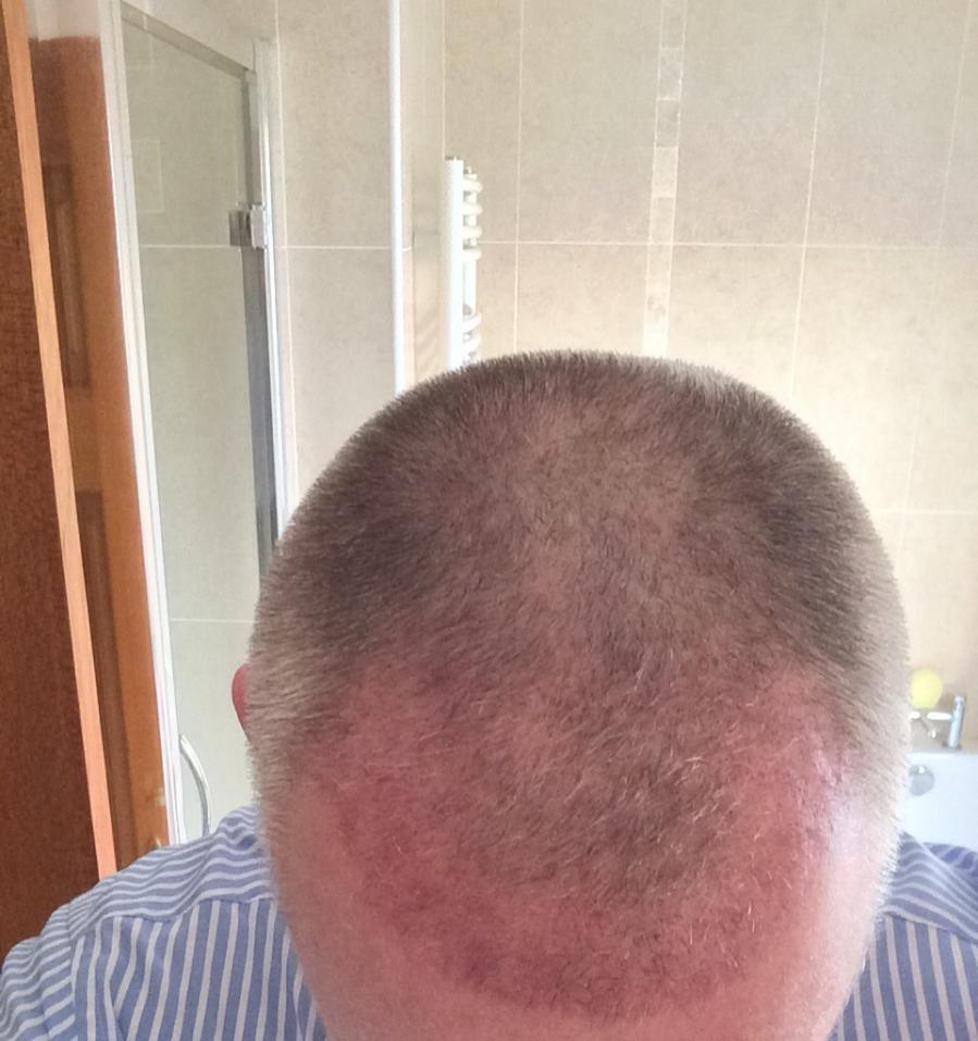 After you get back home, it really is a case of getting into a routine of not doing very much, eating well, drinking plenty of water and generally taking it easy. It's important to follow the directions from the clinic. Gentle shampooing starts now and this helps remove the scabs from the donor and recipient area. I chose to sleep downstairs for the first week because you are sleeping in a sitting up position and you don't settle that well. I slept a bit, watched TV and surfed the internet. One thing I did do that worked well is that I didn't shave after the morning of the surgery and grew a beard. This took everyone's focus from my hairline as they were a bit surprised that I'd got a beard. One of the major downsides is that the redness takes a few months to subside if you have fair skin no matter what you do and this was my biggest concern before I went back to work. After 5 days the donor area was pretty much healed and you wouldn't have known that 3k hairs were taken from there. Here are some photos leading up to the time I went back to work after two weeks.