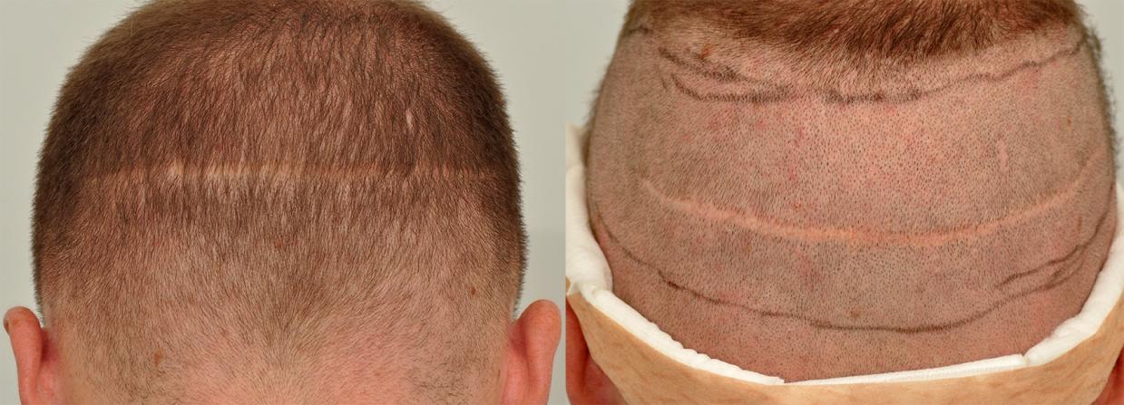The scar that Chuck has posted is not the typical scar that we see from our clinic so I thought I would post our latest result by HD video with a comb through of the donor area. We like this documentation of Video to show the donor scars as it gives a good perspective rather than just showing photos of the scar itself. If you use the link to the video you will see many other results with a comb through of not just the donor zone but the recipient area also.